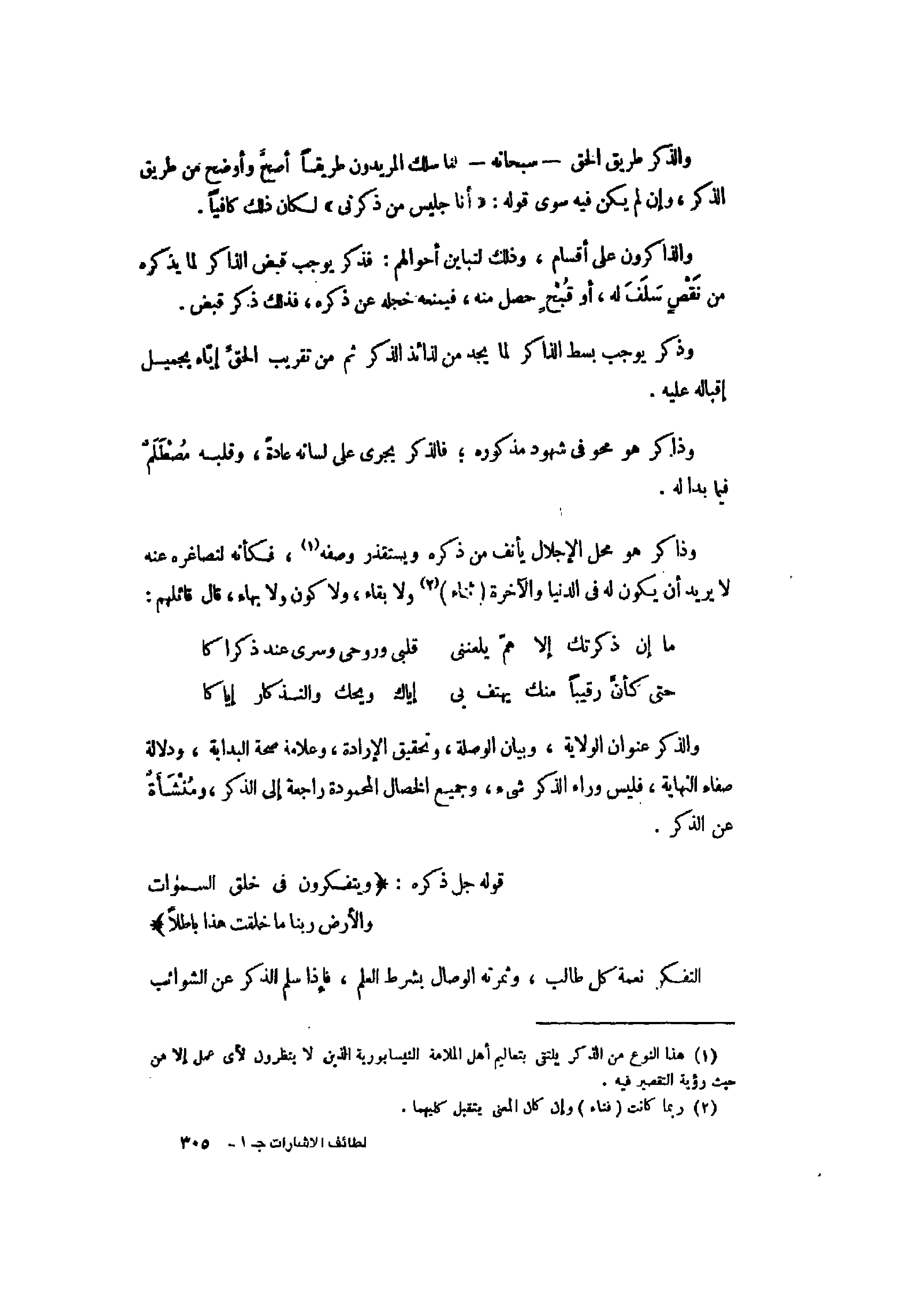 (1) هذا النوع من الذكر يلتقى بتعاليم أهل الملامة النيسابورية الذين لا ينظرون لأى عمل إلا من حيث رؤية التقصير فيه.