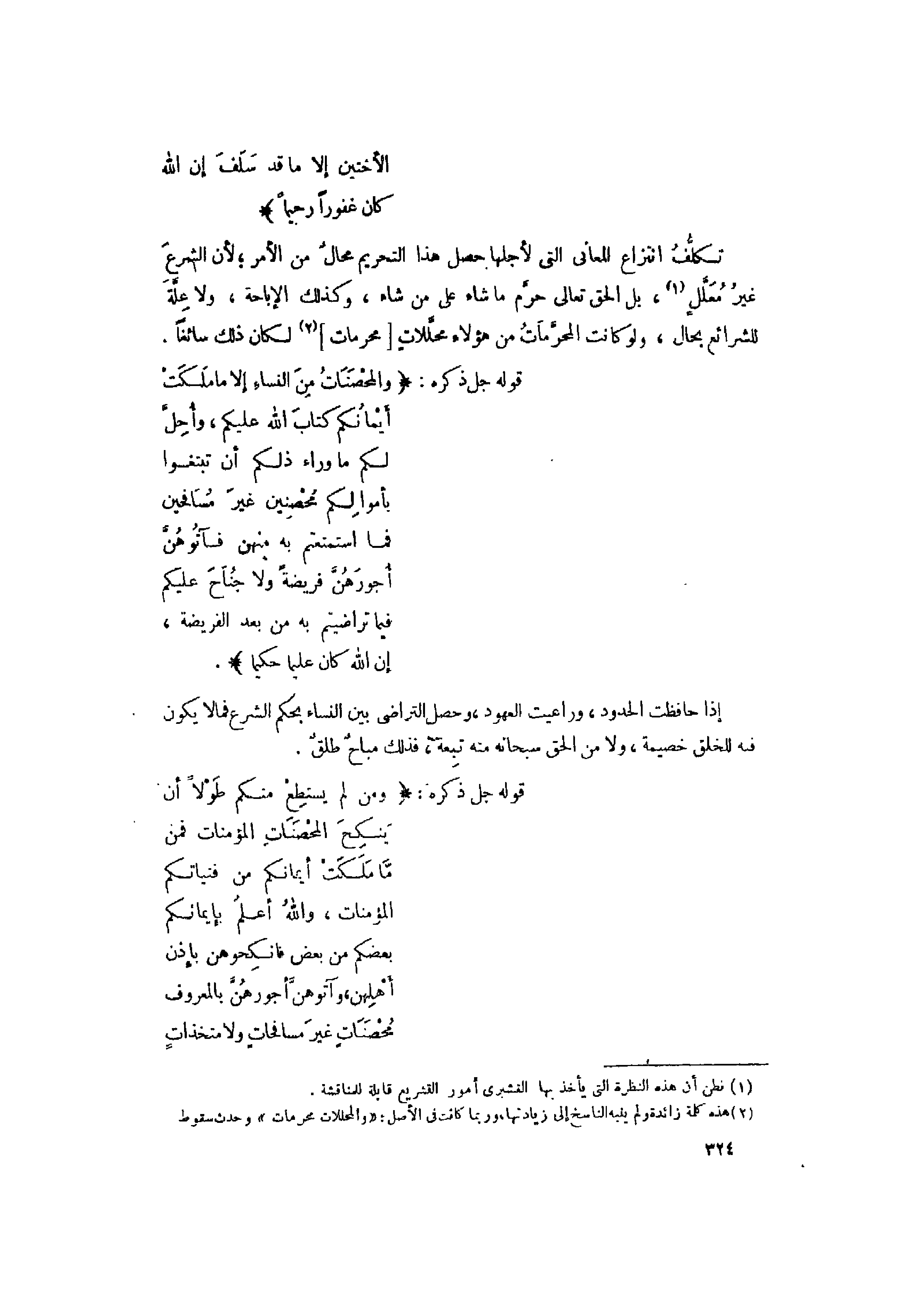(2) هذه كلمة زائدة ولم ينبه الناسخ إلى زيادتها، وربما كانت فى الأصل: «والمحللات محرمات» وحدث سقوط.