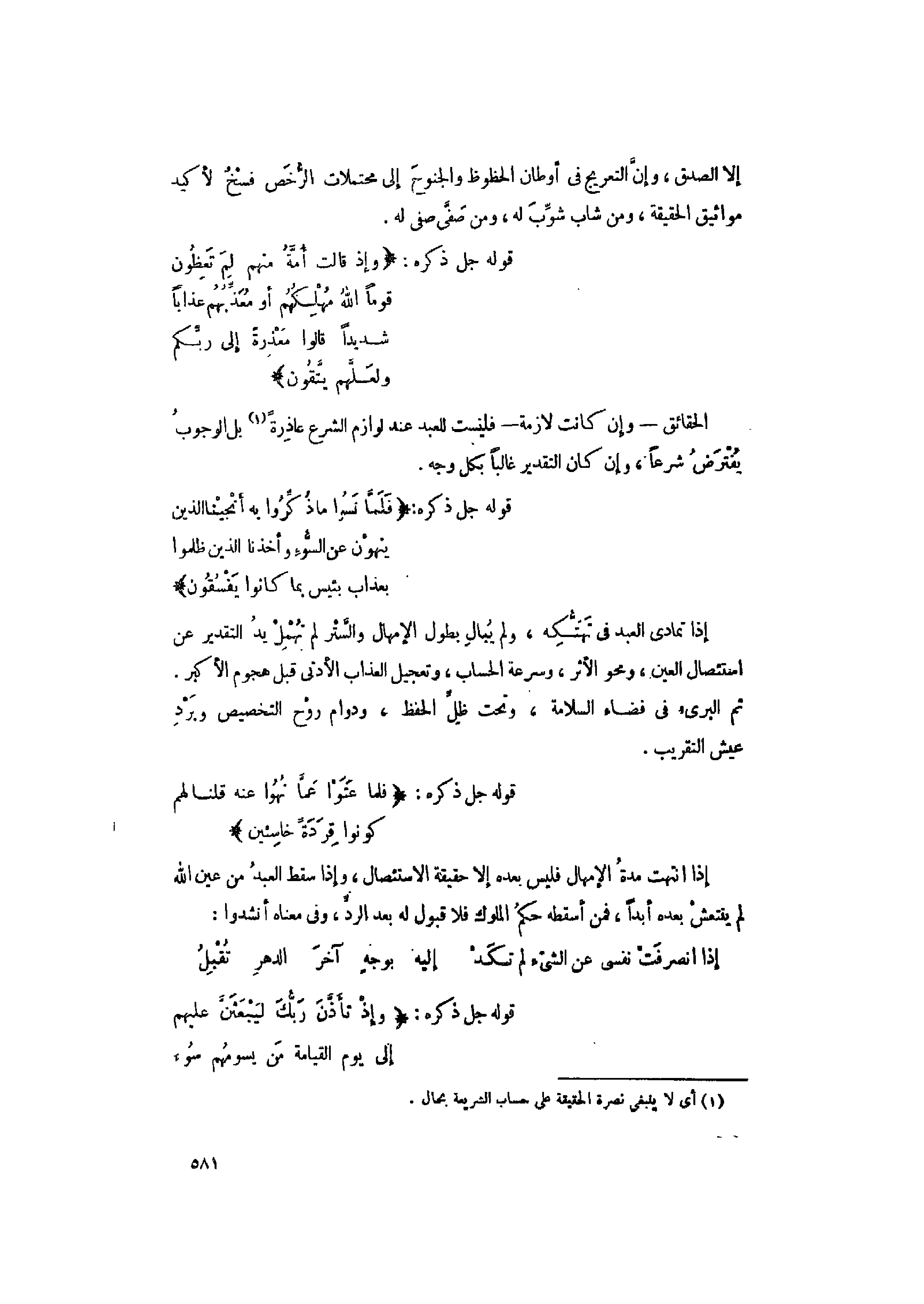 (1) أي لا ينبغى نصرة الحقيقة على حساب الشريعة بحال.