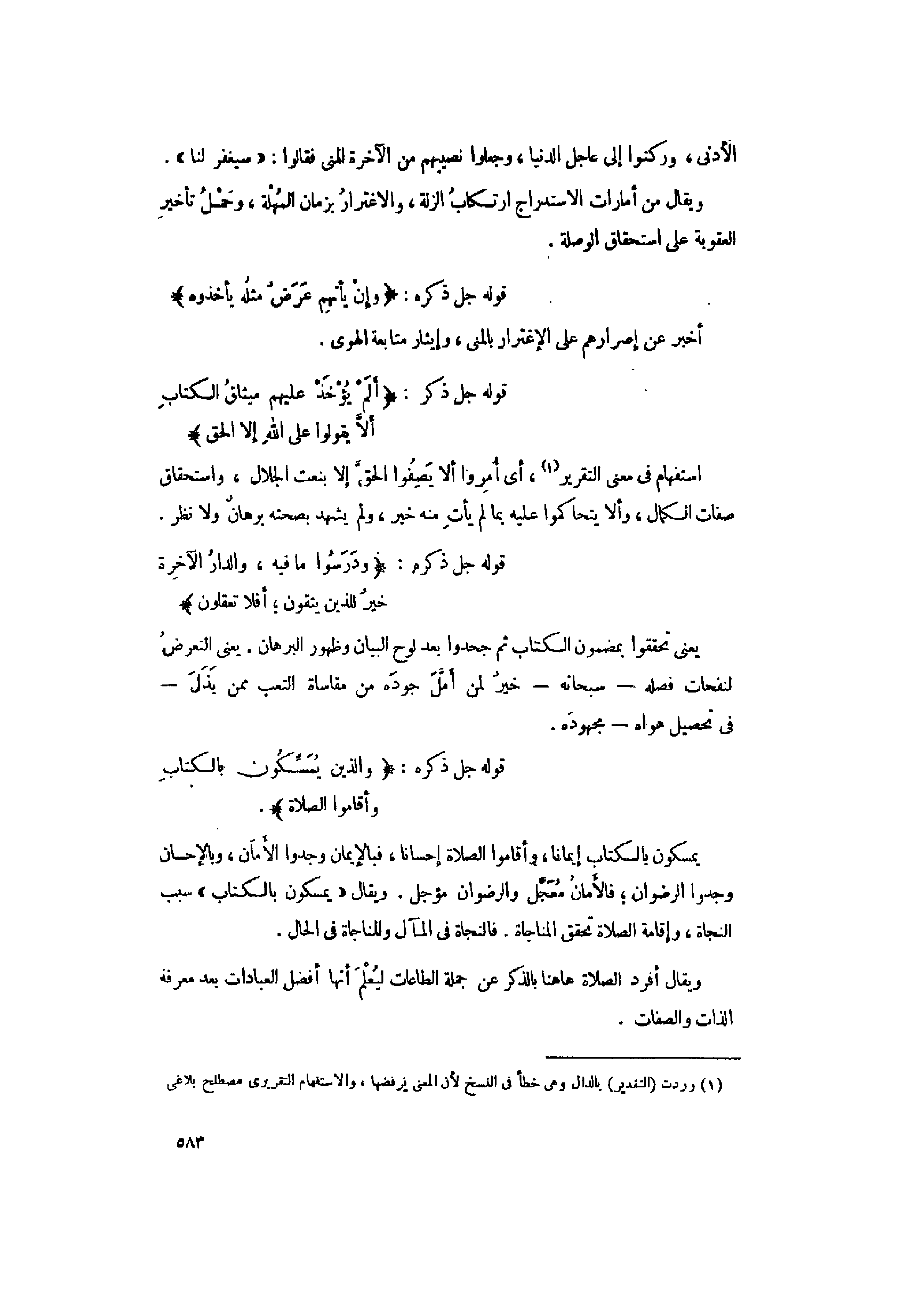 (1) وردت (التقدير) بالدال وهى خطأ فى النسخ لأن المعنى يرفضها، والاستفهام التقريرى مصطلح بلاغي.