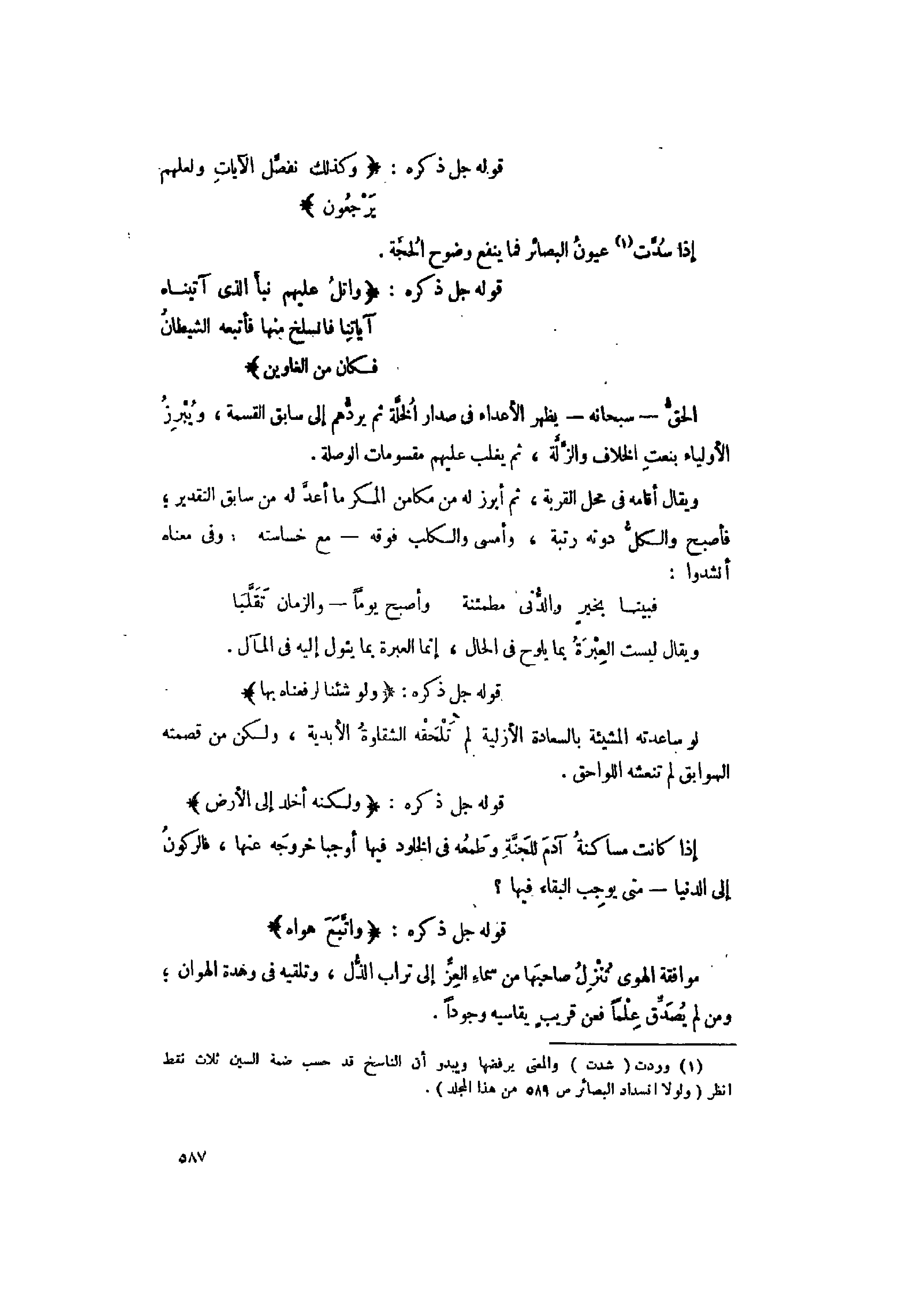 (1) وردت (شدت) والمعنى يرفضها ويبدو أن الناسخ قد حسب ضمة السين ثلاث نقط انظر (ولولا انسداد البصائر ص 589 من هذا المجلد) .