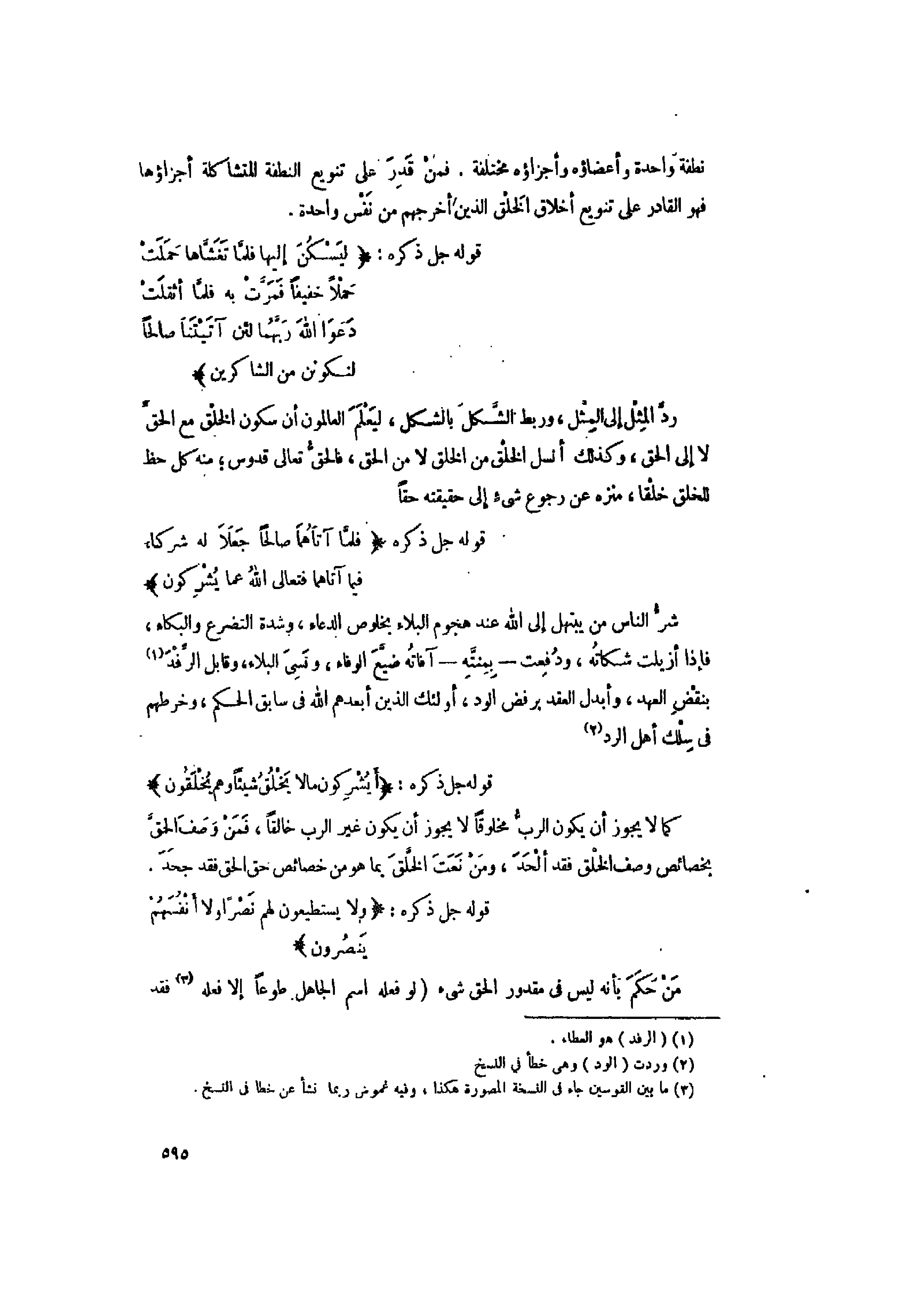 نطفة واحدة وأعضاؤه وأجزاؤه مختلفة. فمن قدر على تنويع النطفة المتشاكلة أجزاؤها فهو القادر على تنويع أخلاق الخلق الذين أخرجهم من نفس واحدة.
