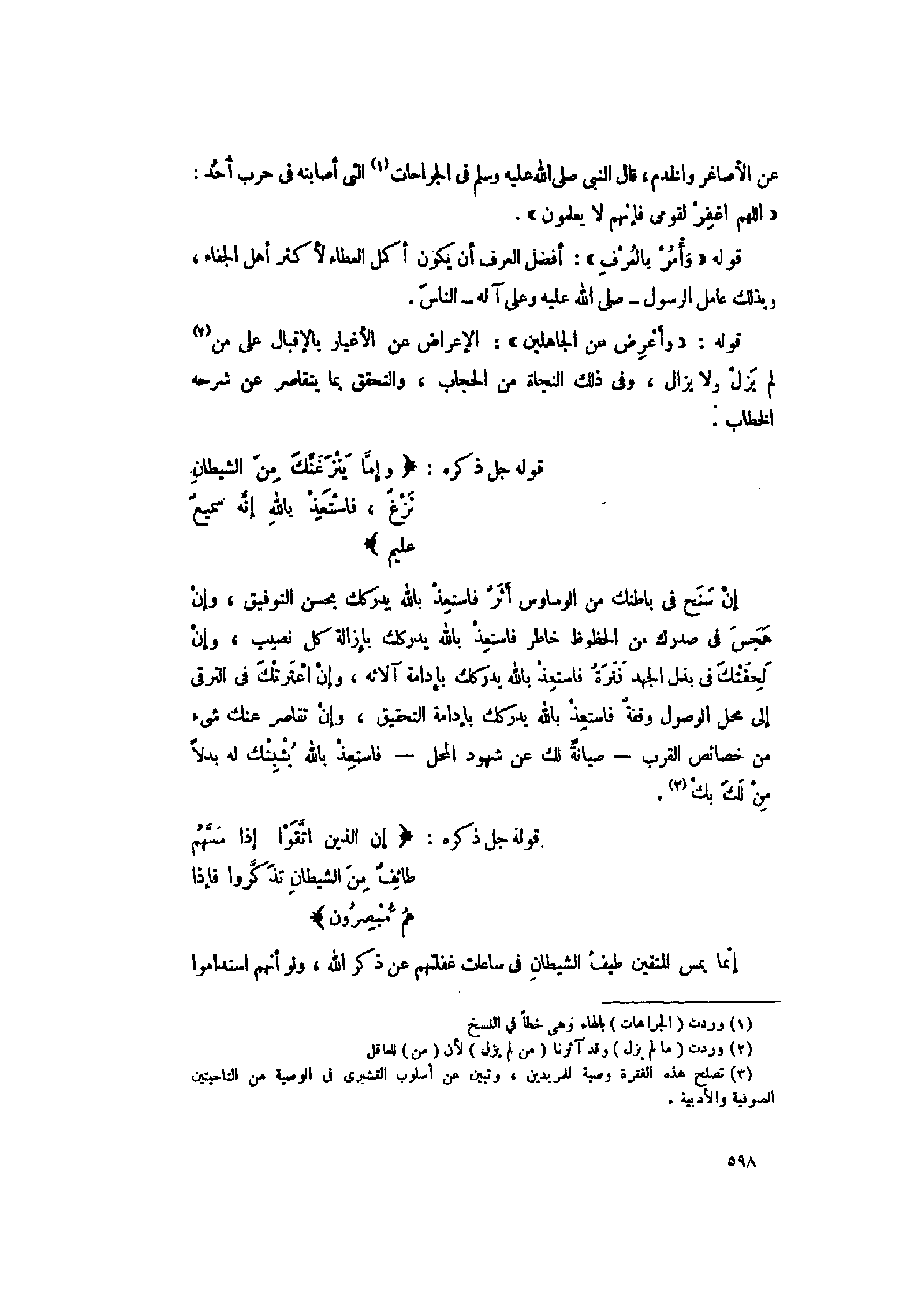 (3) تصلح هذه الفقرة وصية المريدين، وتبين عن أسلوب القشيري فى الوصية من الناحيتين الصوفية والأدبية.
