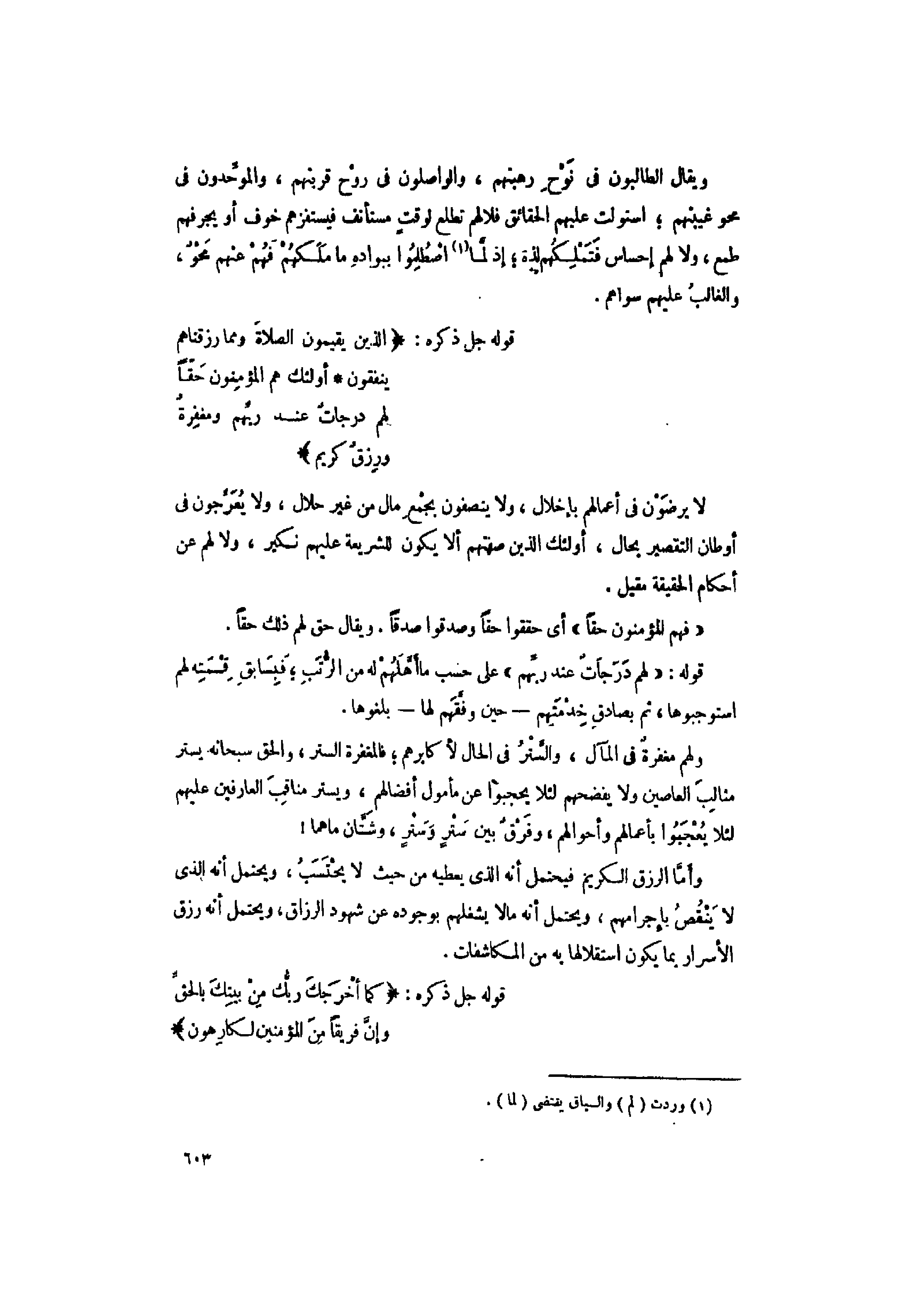 لا يرضون فى أعمالهم بإخلال، ولا يتصفون بجمع مال من غير حلال، ولا يعرّجون فى أوطان التقصير بحال، أولئك الذين صفتهم ألا يكون للشريعة عليهم نكير، ولا لهم عن أحكام الحقيقة مقيل.