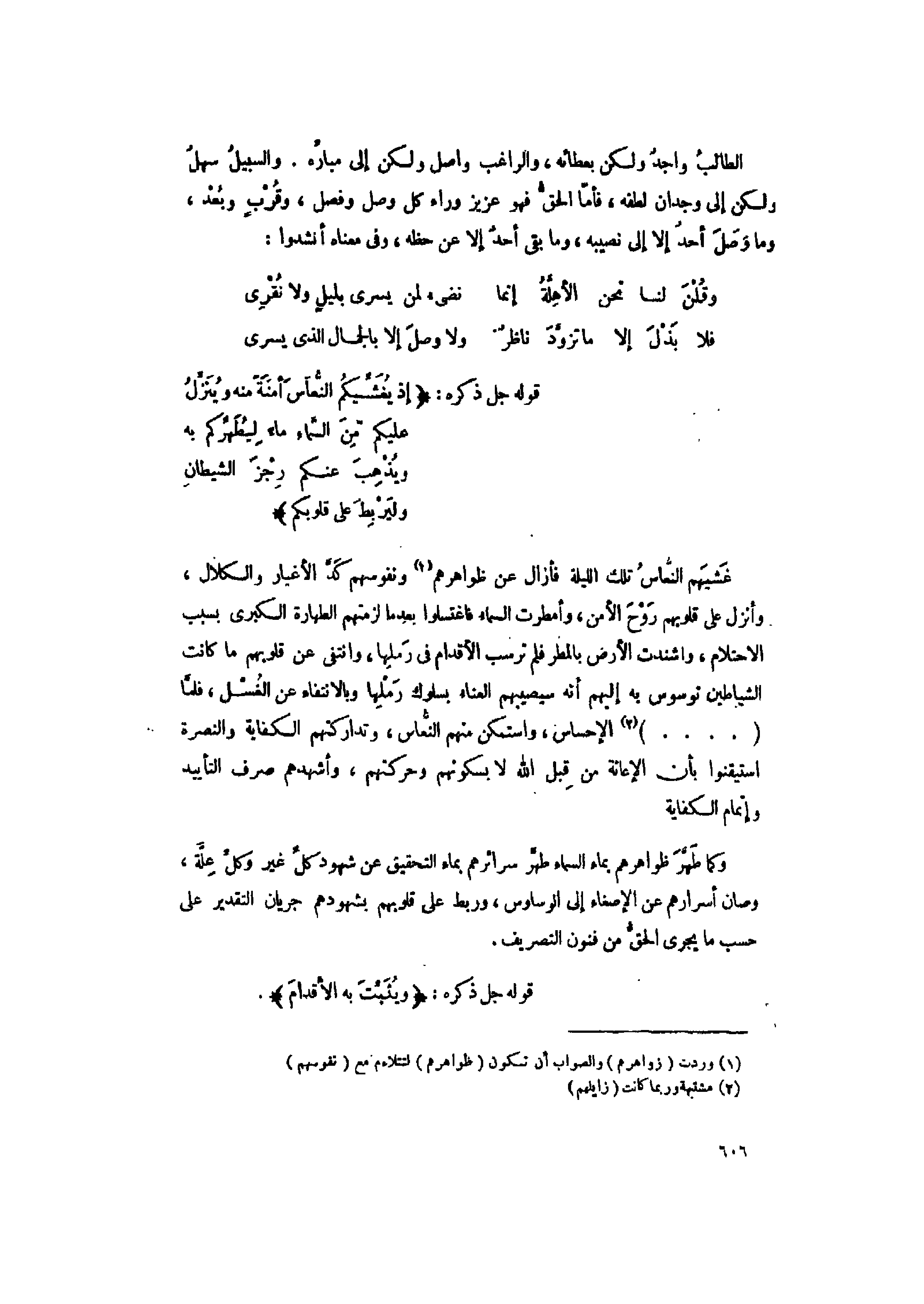 (1) وردت (زواهرهم) والصواب أن تكون (ظواهرهم) لتتلاءم مع (نفوسهم)