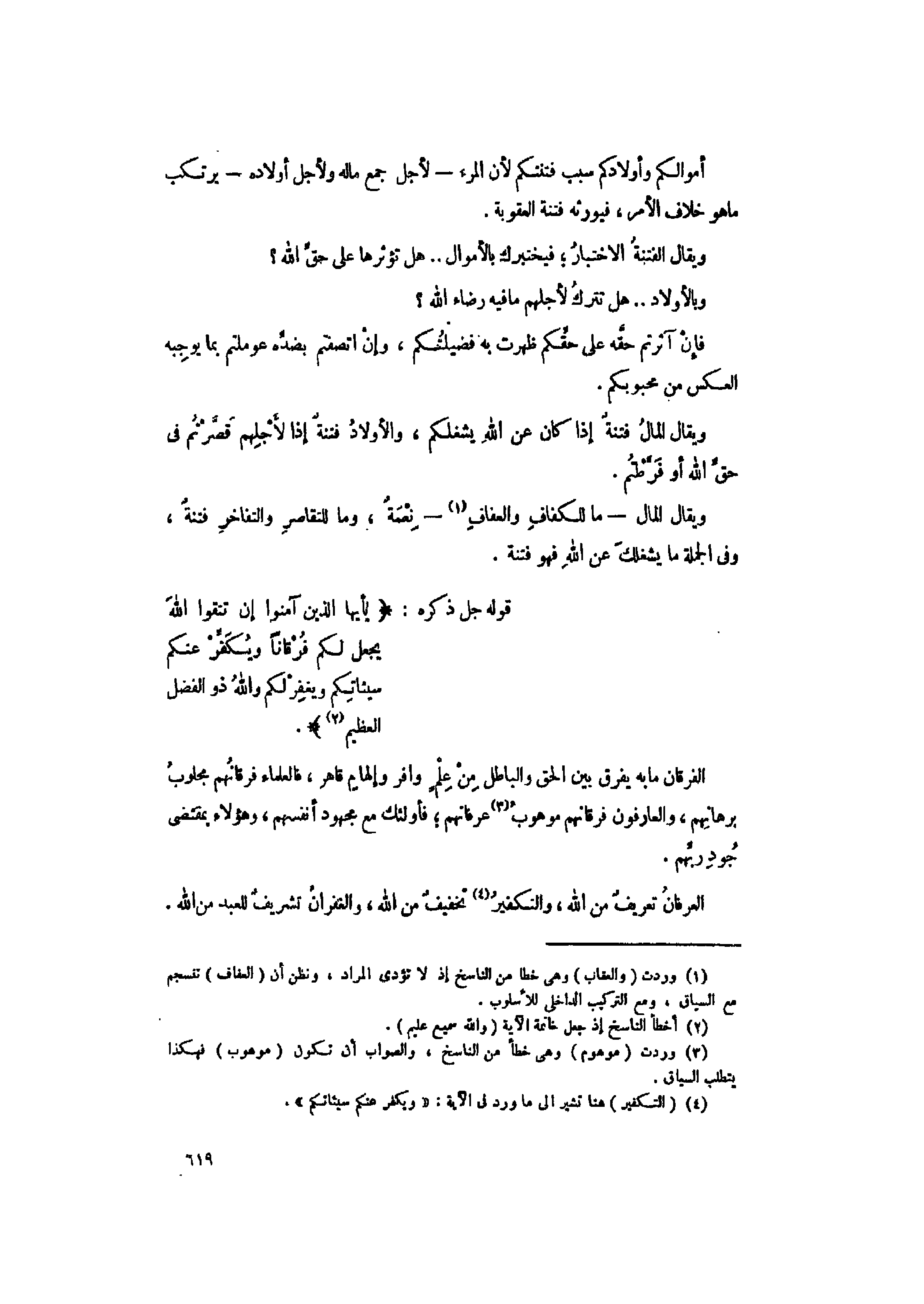 (4) (التكفير) هنا تشير الى ما ورد فى الآية: «وَيُكَفِّرْ عَنْكُمْ سَيِّئاتِكُمْ» .
