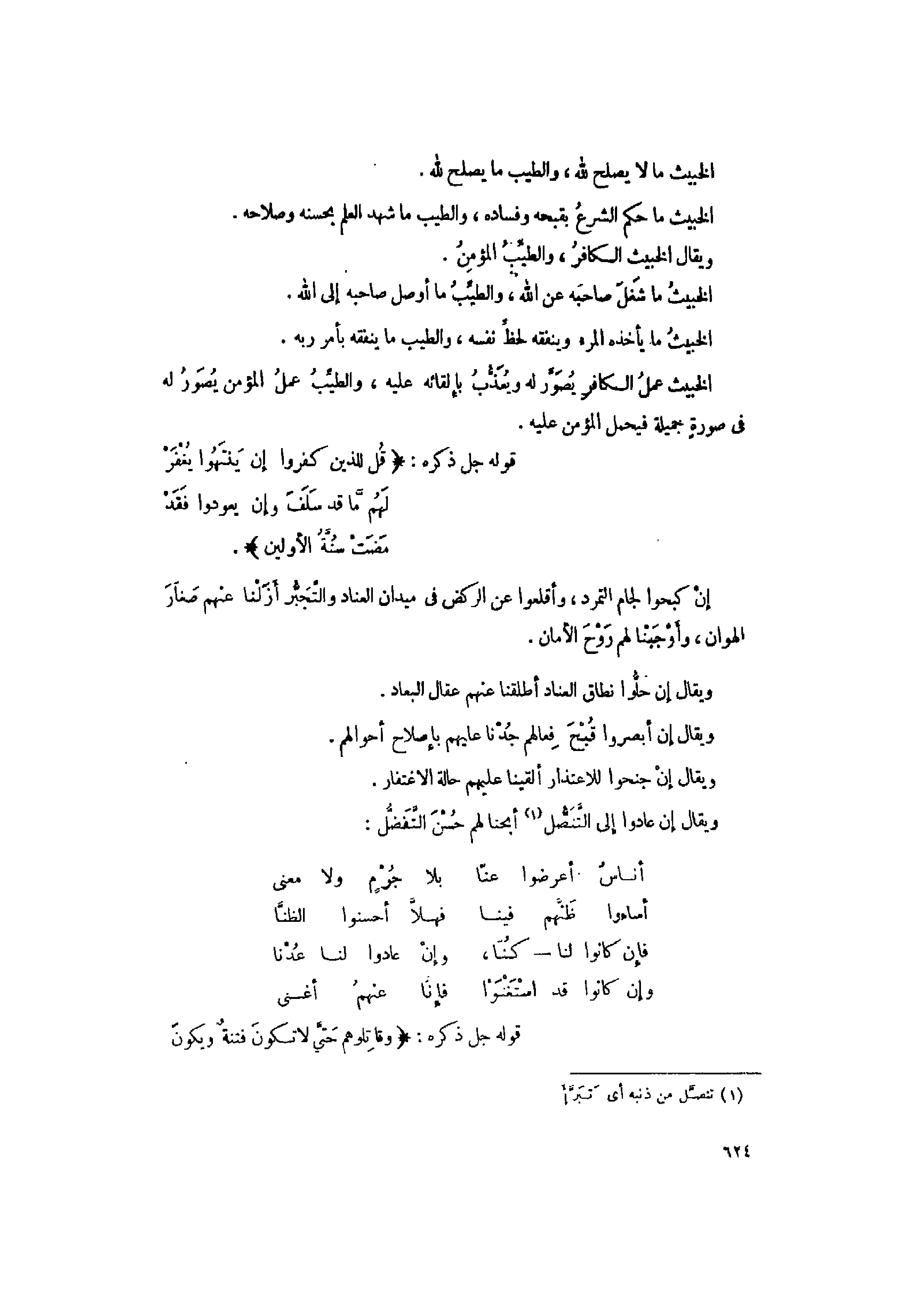 ويقال إن عادوا إلى التّنصّل «1» أبحنا لهم حسن التّفضّل:
