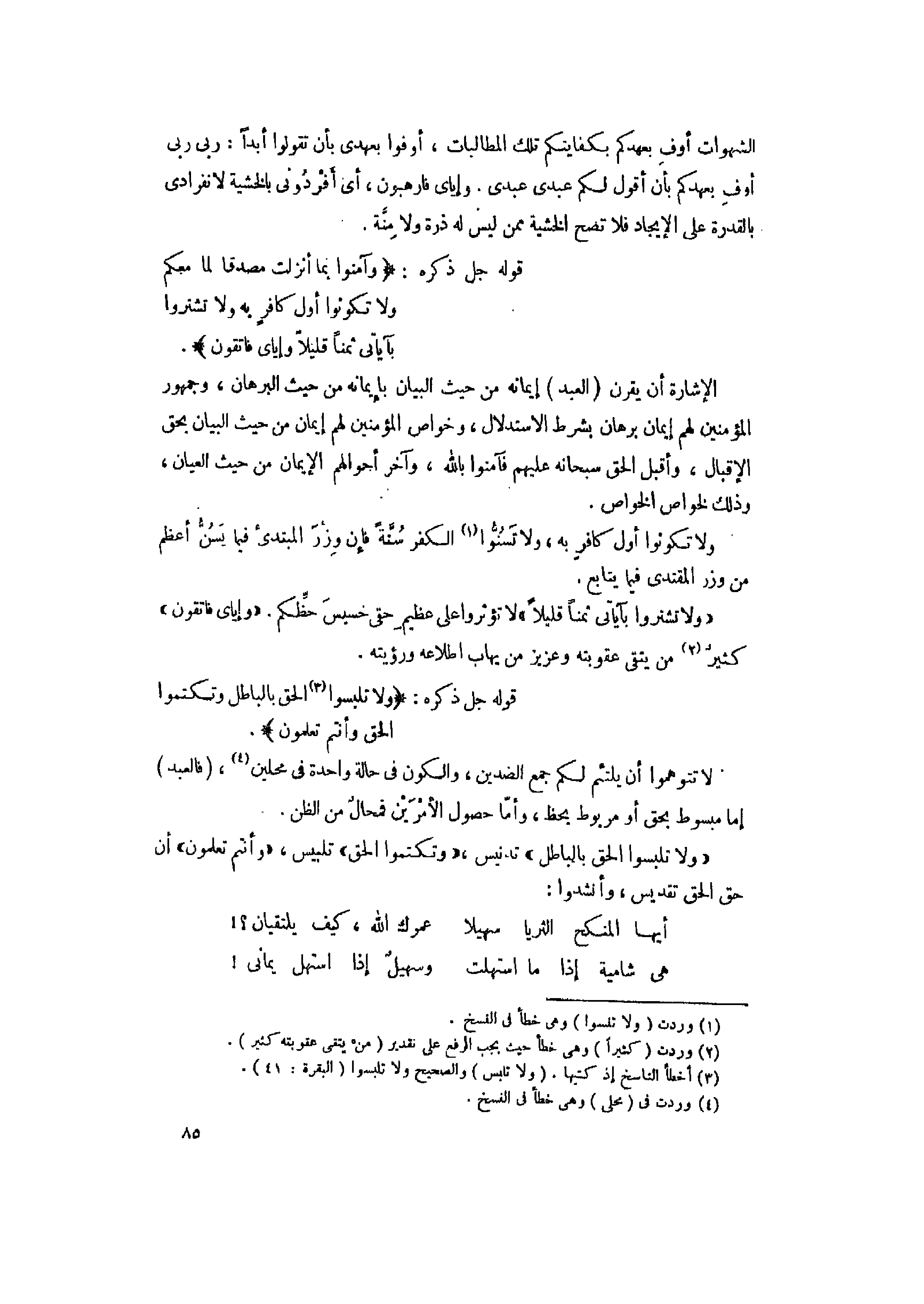 (3) أخطأ الناسخ إذ كتبها. (ولا تلبس) والصحيح ولا تلبسوا (البقرة: 41) .