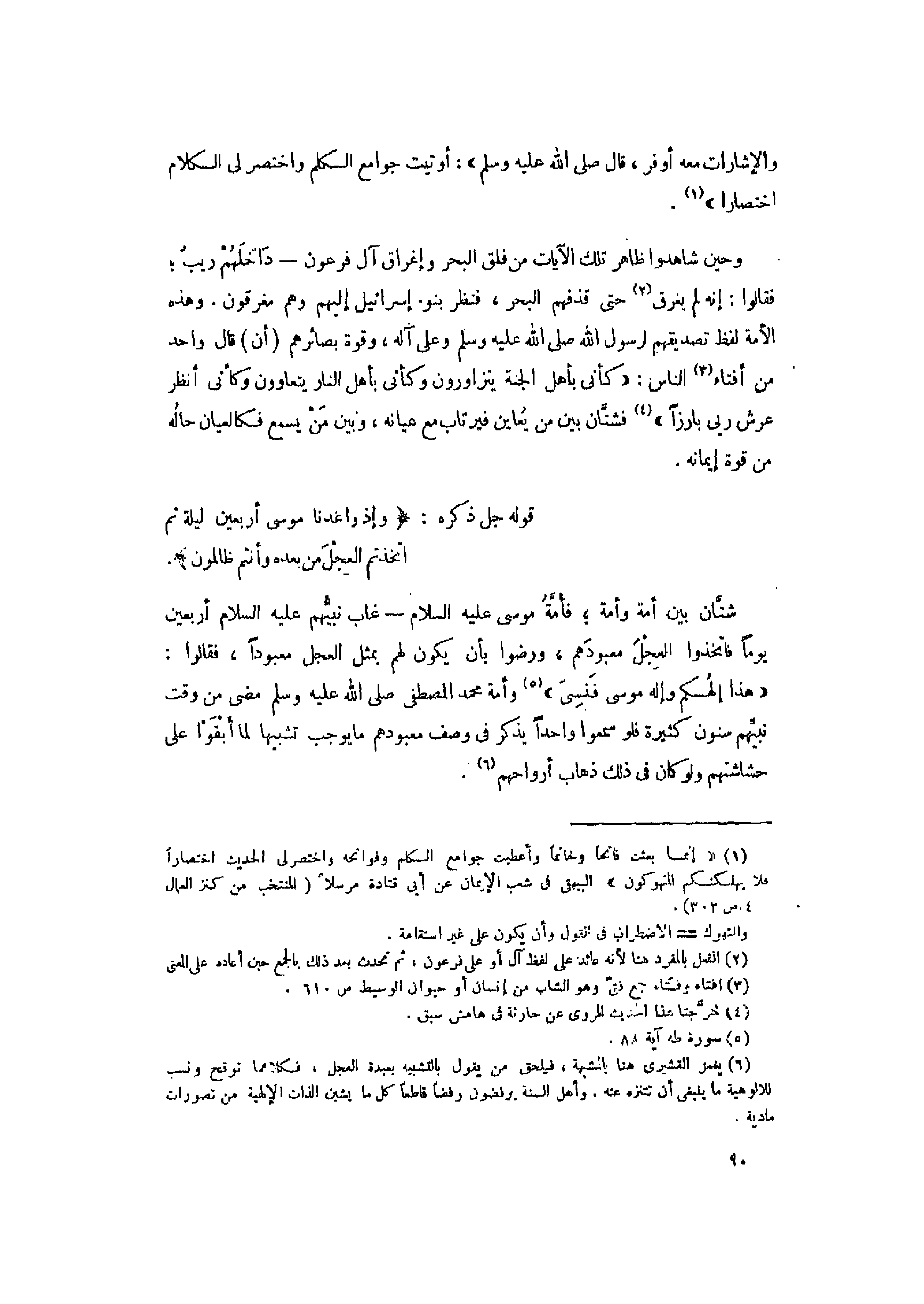 (6) يغمز القشيري هنا بالمشبهة، فيلحق من يقول بالتشبيه بعيدة العجل، فكلاهما توقح ونسب للالوهية ما ينبغى أن تتنزه عنه. وأهل السنة يرفضون رفضا قاطعا كل ما يشين الذات الإلهية من تصورات مادية.