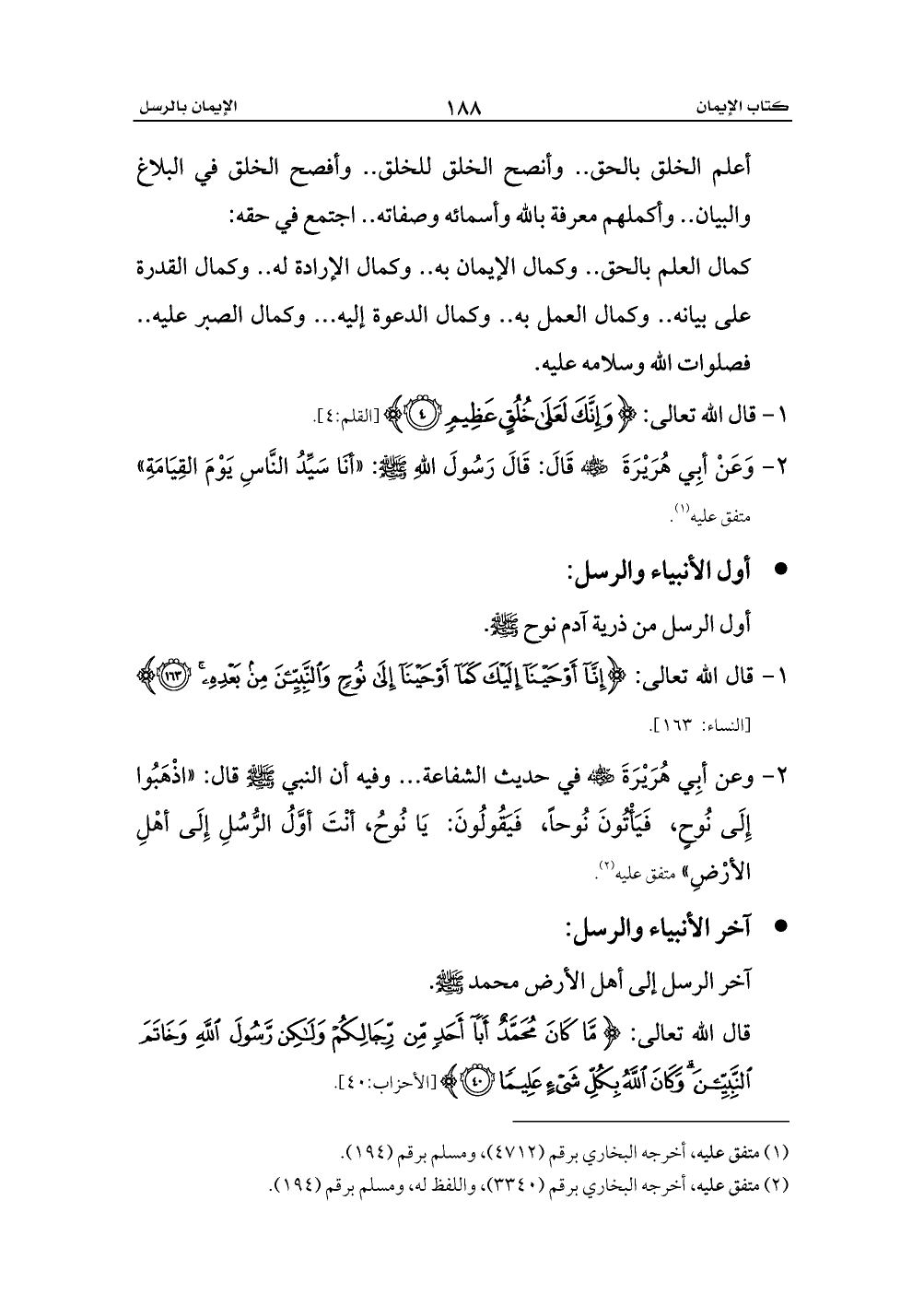 1 - قال الله تعالى: {إِنَّا أَوْحَيْنَا إِلَيْكَ كَمَا أَوْحَيْنَا إِلَى نُوحٍ وَالنَّبِيِّينَ مِنْ بَعْدِهِ (163)} [النساء: 163].