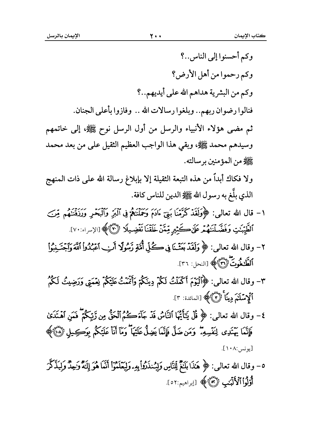ولا فكاك أبداً من هذه التبعة الثقيلة إلا بإبلاغ رسالة الله على ذات المنهج الذي بلَّغ به رسول الله - صلى الله عليه وسلم - الدين للناس كافة.
