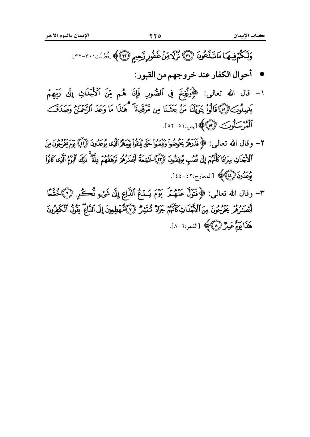 1 - قال الله تعالى: {وَنُفِخَ فِي الصُّورِ فَإِذَا هُمْ مِنَ الْأَجْدَاثِ إِلَى رَبِّهِمْ يَنْسِلُونَ (51) قَالُوا يَاوَيْلَنَا مَنْ بَعَثَنَا مِنْ مَرْقَدِنَا هَذَا مَا وَعَدَ الرَّحْمَنُ وَصَدَقَ الْمُرْسَلُونَ (52)} [يس:51 - 52].