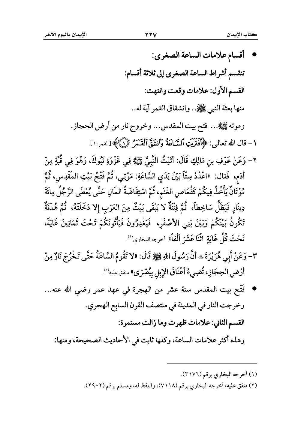 تنقسم أشراط الساعة الصغرى إلى ثلاثة أقسام: