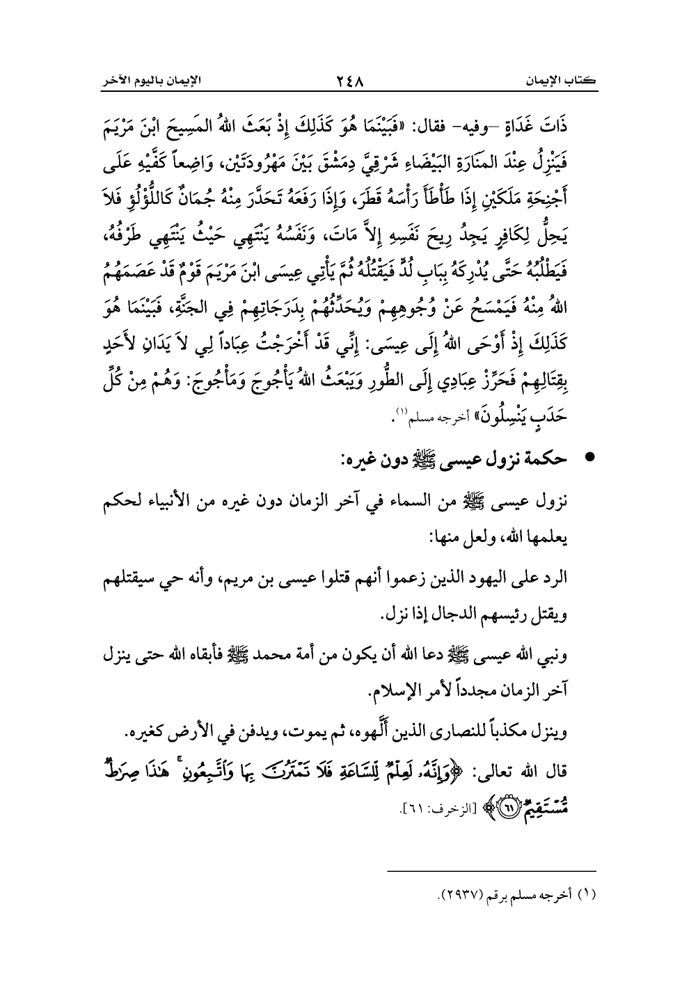 قال الله تعالى: {وَإِنَّهُ لَعِلْمٌ لِلسَّاعَةِ فَلَا تَمْتَرُنَّ بِهَا وَاتَّبِعُونِ هَذَا صِرَاطٌ مُسْتَقِيمٌ} [الزخرف: 61].