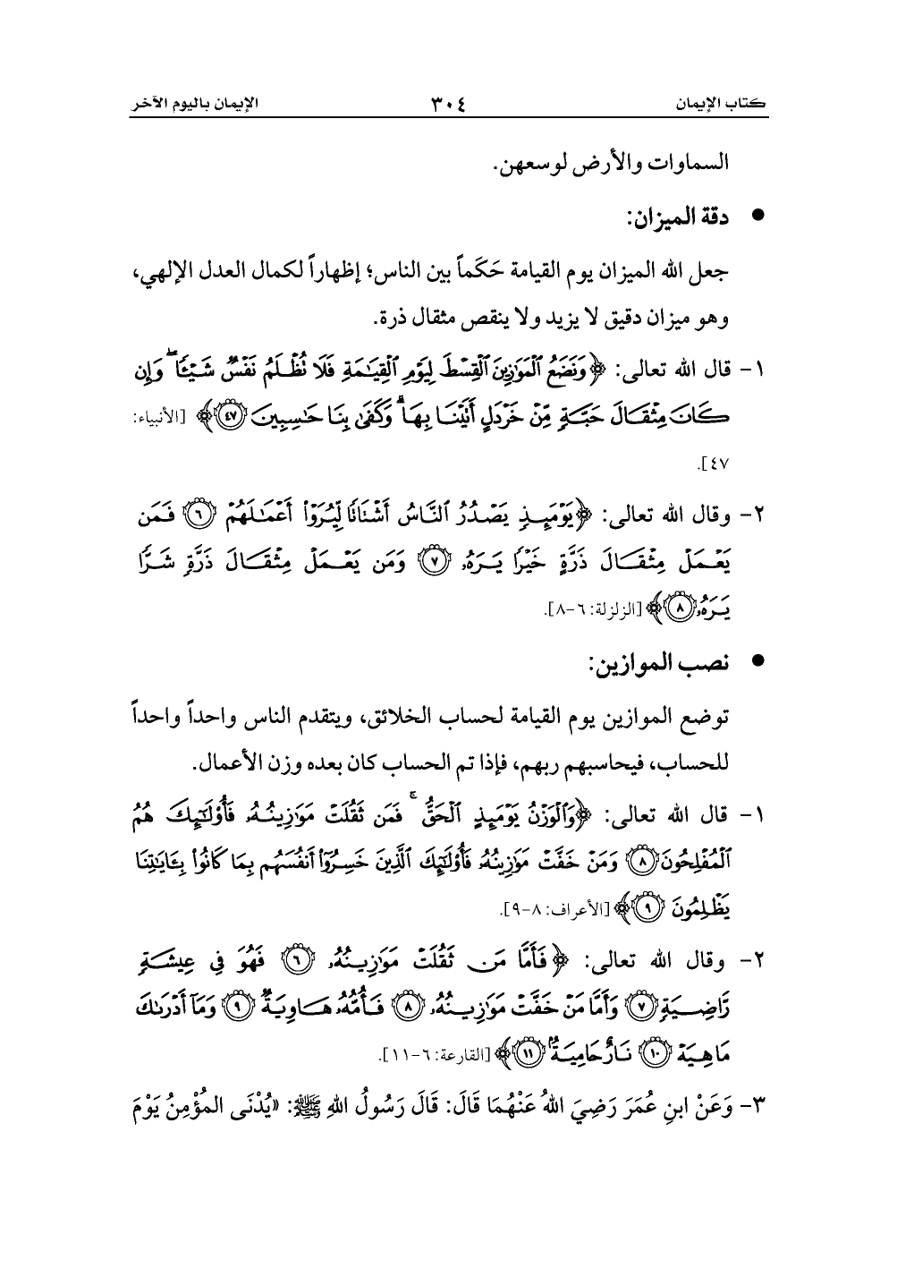 1 - قال الله تعالى: {وَالْوَزْنُ يَوْمَئِذٍ الْحَقُّ فَمَنْ ثَقُلَتْ مَوَازِينُهُ فَأُولَئِكَ هُمُ الْمُفْلِحُونَ (8) وَمَنْ خَفَّتْ مَوَازِينُهُ فَأُولَئِكَ الَّذِينَ خَسِرُوا أَنْفُسَهُمْ بِمَا كَانُوا بِآيَاتِنَا يَظْلِمُونَ (9)} [الأعراف: 8 - 9].