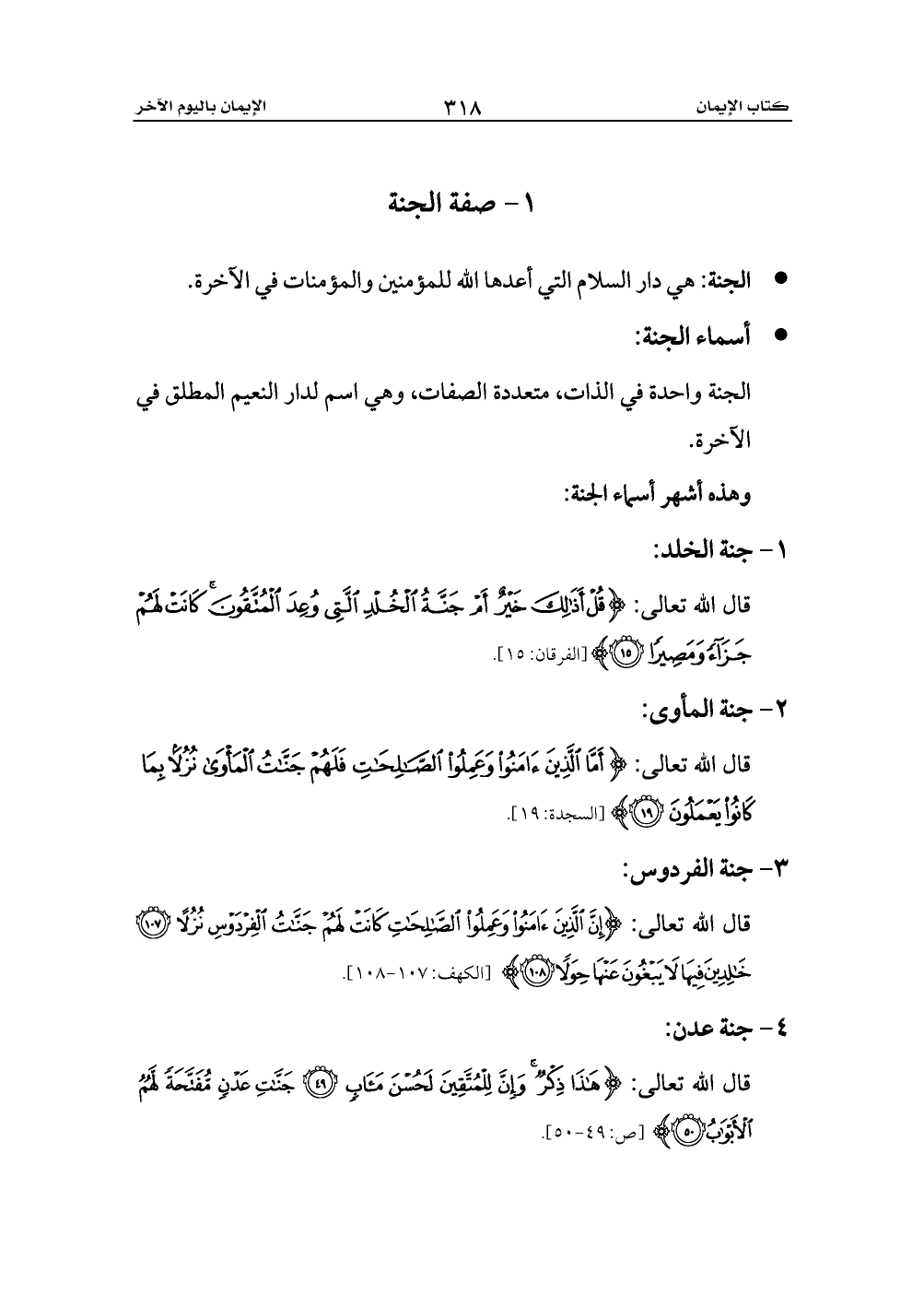 قال الله تعالى: {إِنَّ الَّذِينَ آمَنُوا وَعَمِلُوا الصَّالِحَاتِ كَانَتْ لَهُمْ جَنَّاتُ الْفِرْدَوْسِ نُزُلًا (107) خَالِدِينَ فِيهَا لَا يَبْغُونَ عَنْهَا حِوَلًا (108)} [الكهف: 107 - 108].