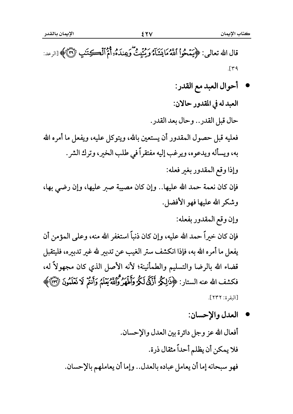 أفعال الله عز وجل دائرة بين العدل والإحسان.