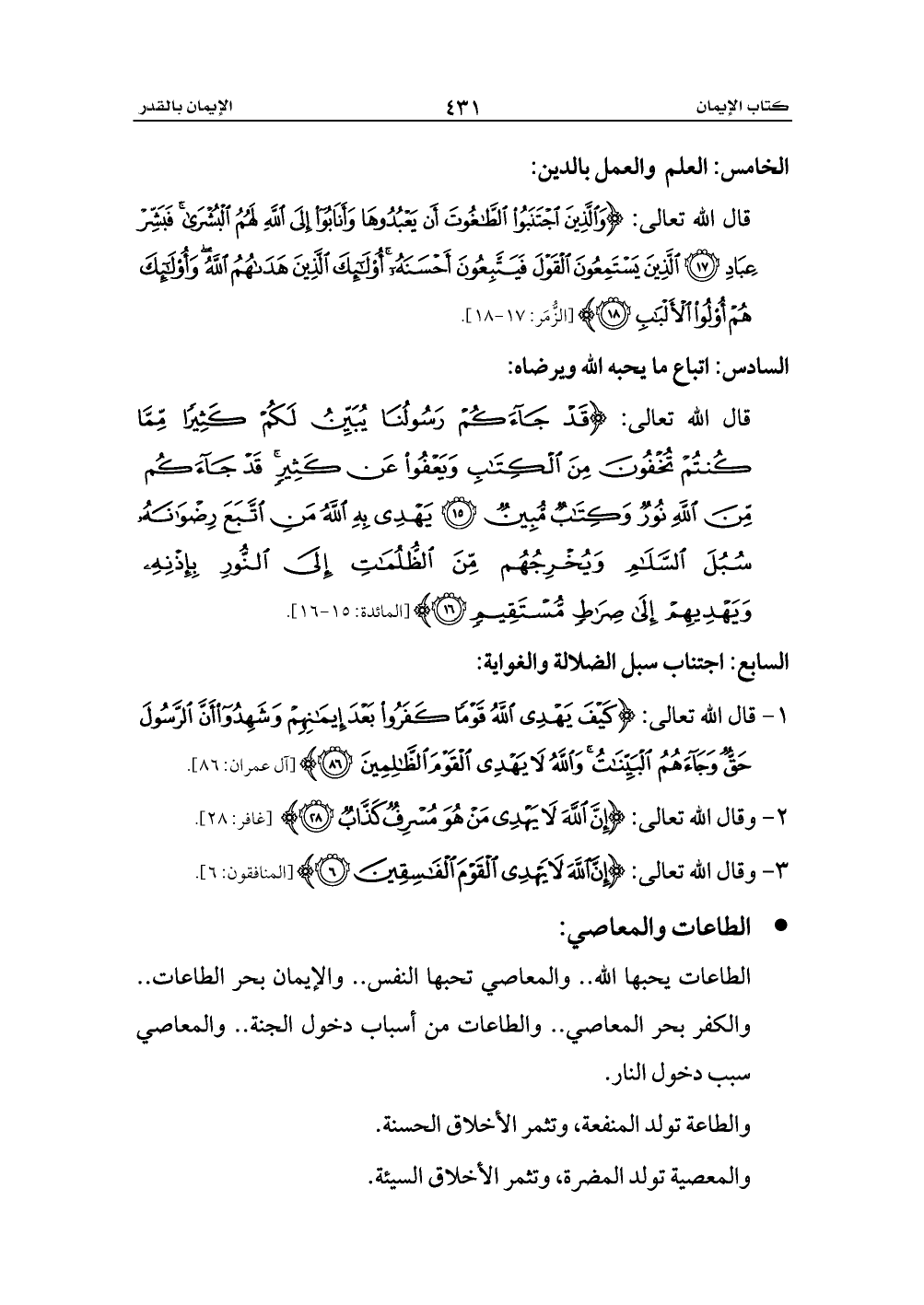 الطاعات يحبها الله .. والمعاصي تحبها النفس .. والإيمان بحر الطاعات .. والكفر بحر المعاصي .. والطاعات من أسباب دخول الجنة .. والمعاصي سبب دخول النار.