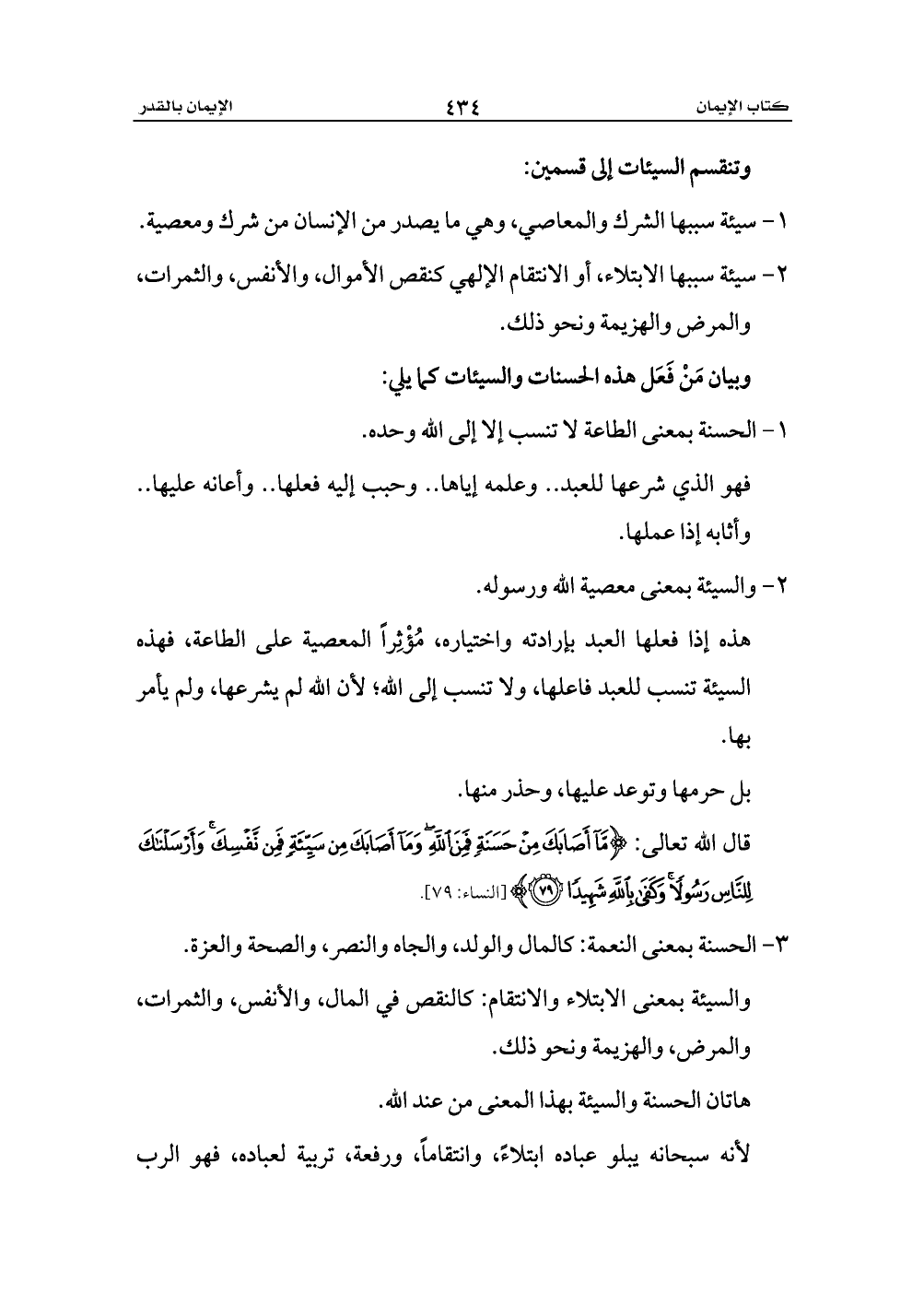 قال الله تعالى: {مَا أَصَابَكَ مِنْ حَسَنَةٍ فَمِنَ اللَّهِ وَمَا أَصَابَكَ مِنْ سَيِّئَةٍ فَمِنْ نَفْسِكَ وَأَرْسَلْنَاكَ لِلنَّاسِ رَسُولًا وَكَفَى بِاللَّهِ شَهِيدًا (79)} [النساء: 79].