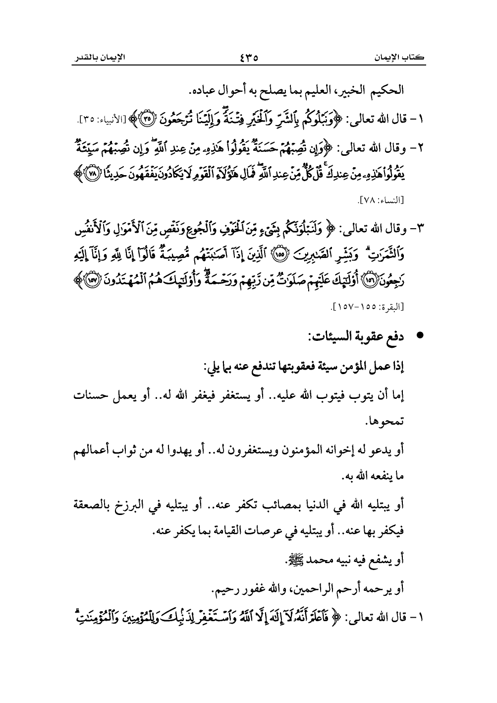 1 - قال الله تعالى: {وَنَبْلُوكُمْ بِالشَّرِّ وَالْخَيْرِ فِتْنَةً وَإِلَيْنَا تُرْجَعُونَ (35)} [الأنبياء: 35].