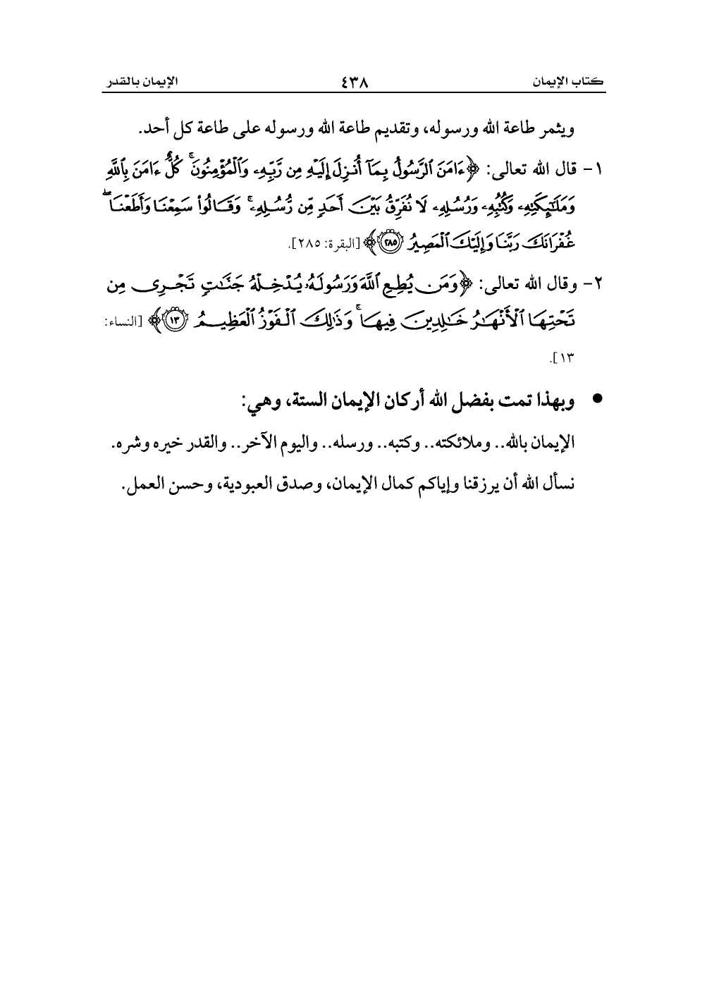 - وبهذا تمت بفضل الله أركان الإيمان الستة، وهي: