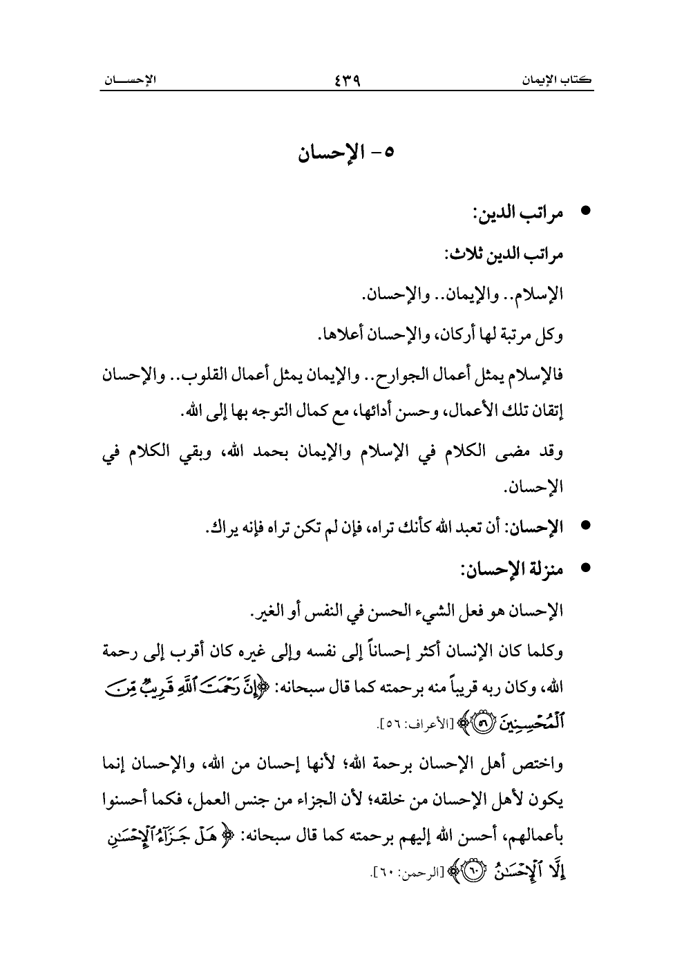 وكل مرتبة لها أركان، والإحسان أعلاها.