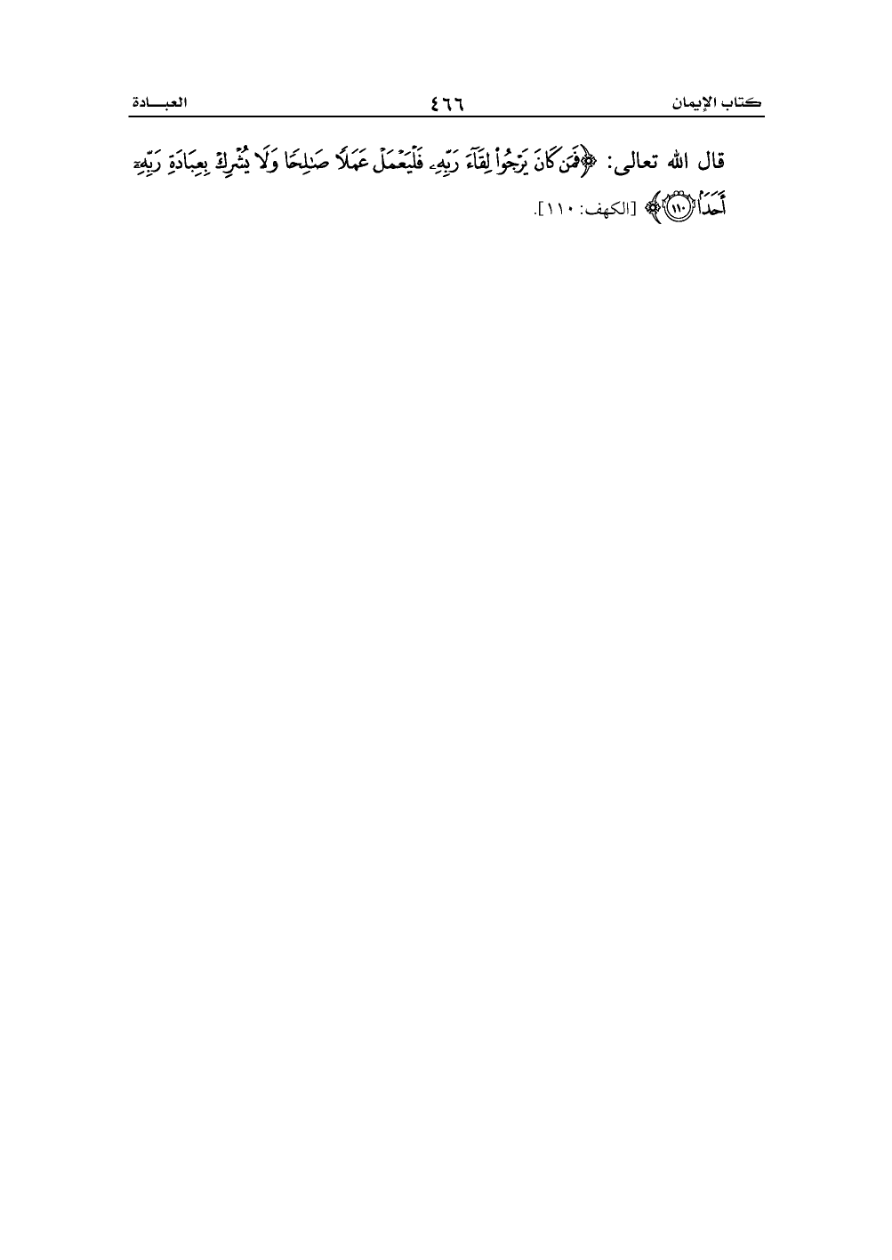 قال الله تعالى: {فَمَنْ كَانَ يَرْجُو لِقَاءَ رَبِّهِ فَلْيَعْمَلْ عَمَلًا صَالِحًا وَلَا يُشْرِكْ بِعِبَادَةِ رَبِّهِ أَحَدًا (110)} [الكهف: 110].