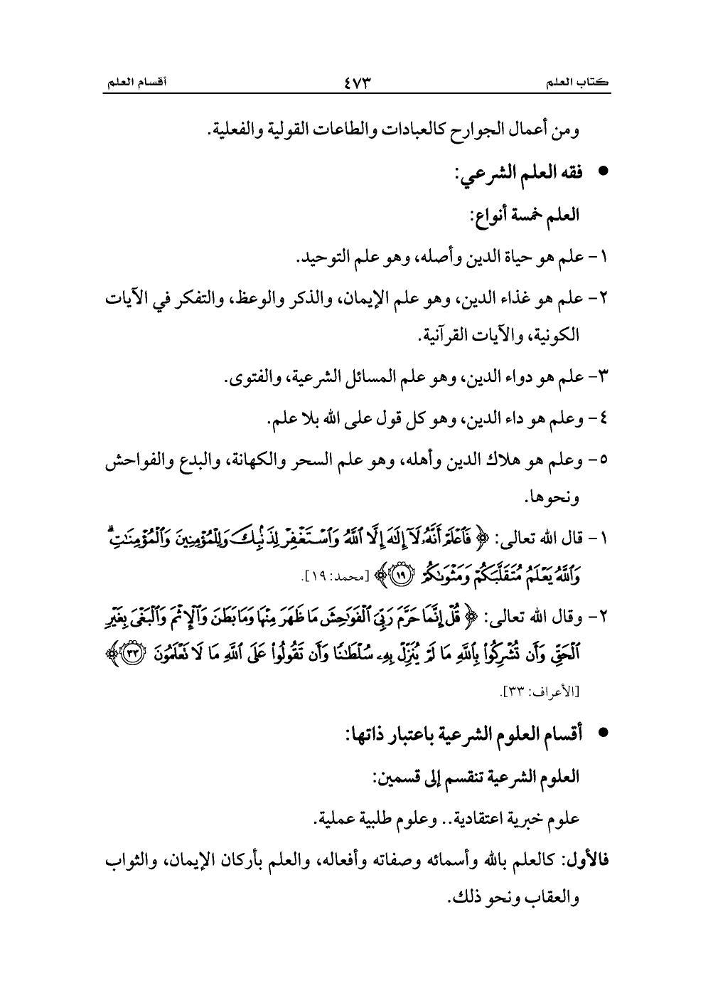 - أقسام العلوم الشرعية باعتبار ذاتها: