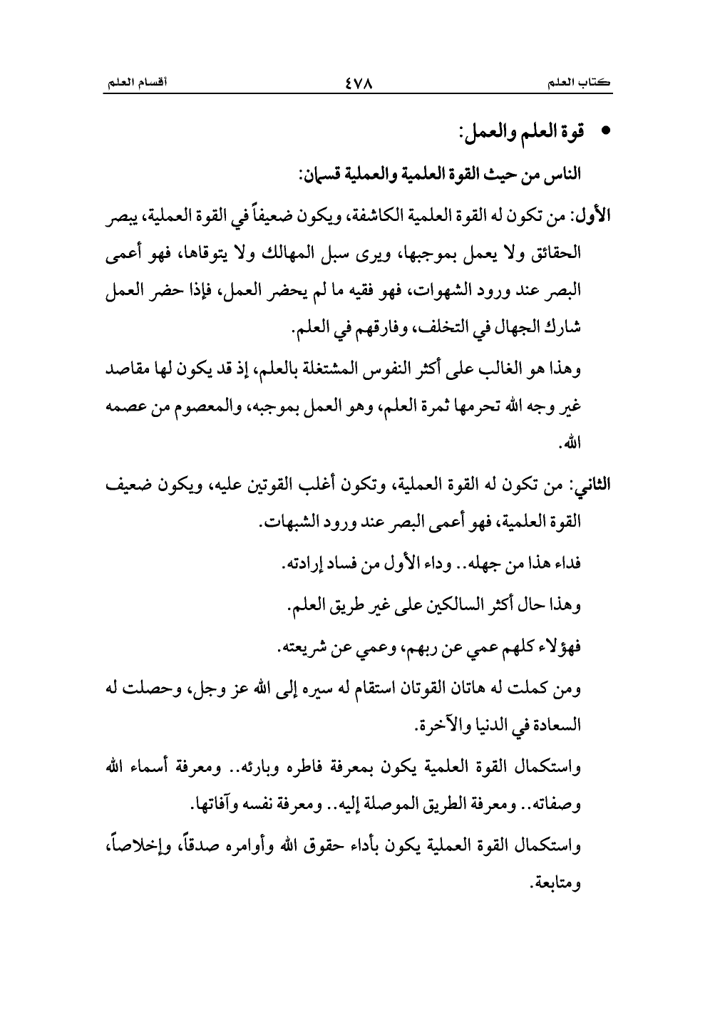 الناس من حيث القوة العلمية والعملية قسمان: