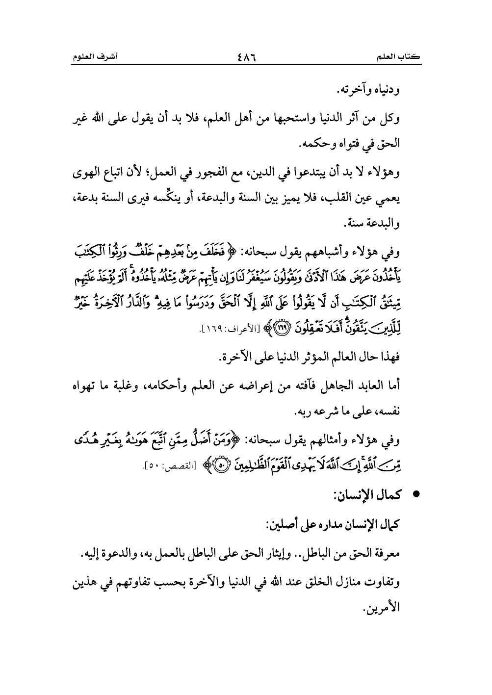 كمال الإنسان مداره على أصلين: