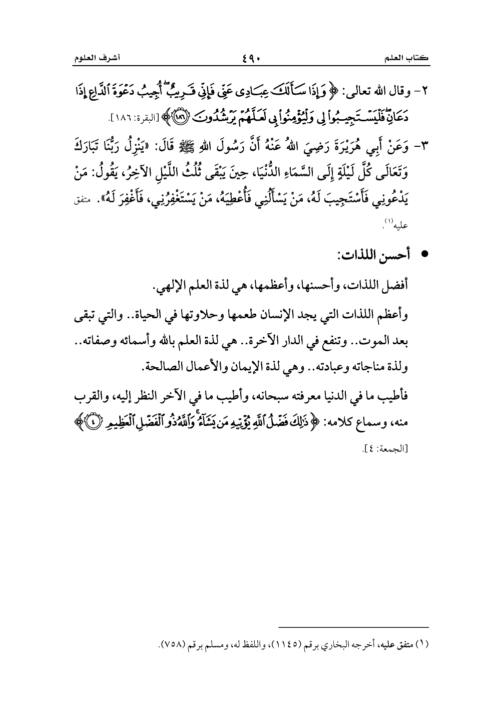 أفضل اللذات، وأحسنها، وأعظمها، هي لذة العلم الإلهي.