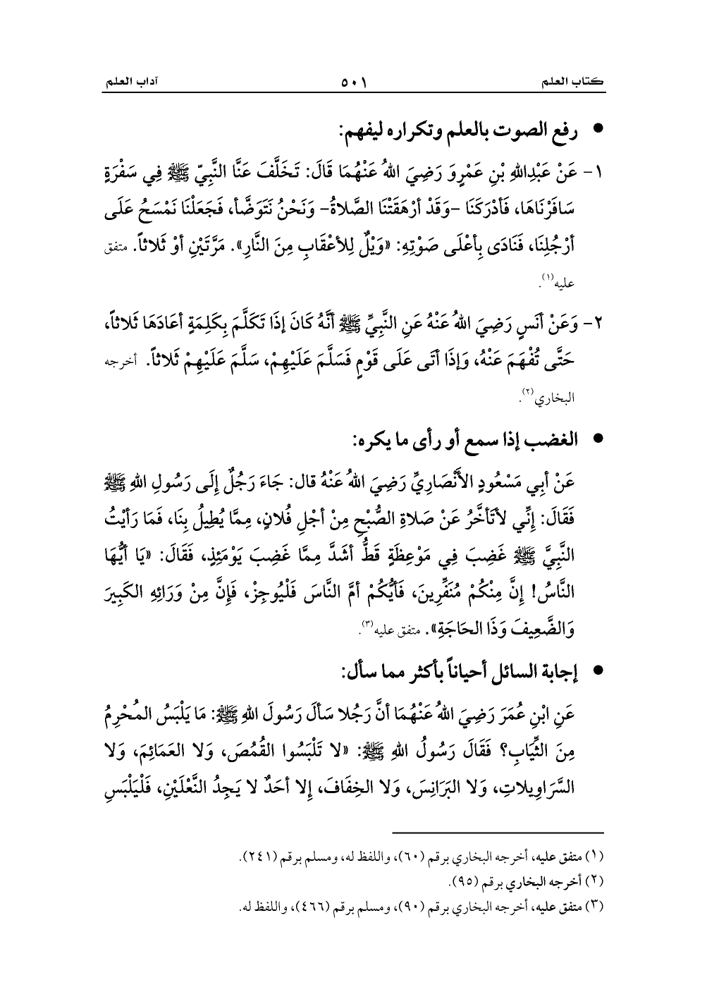 - رفع الصوت بالعلم وتكراره ليفهم: