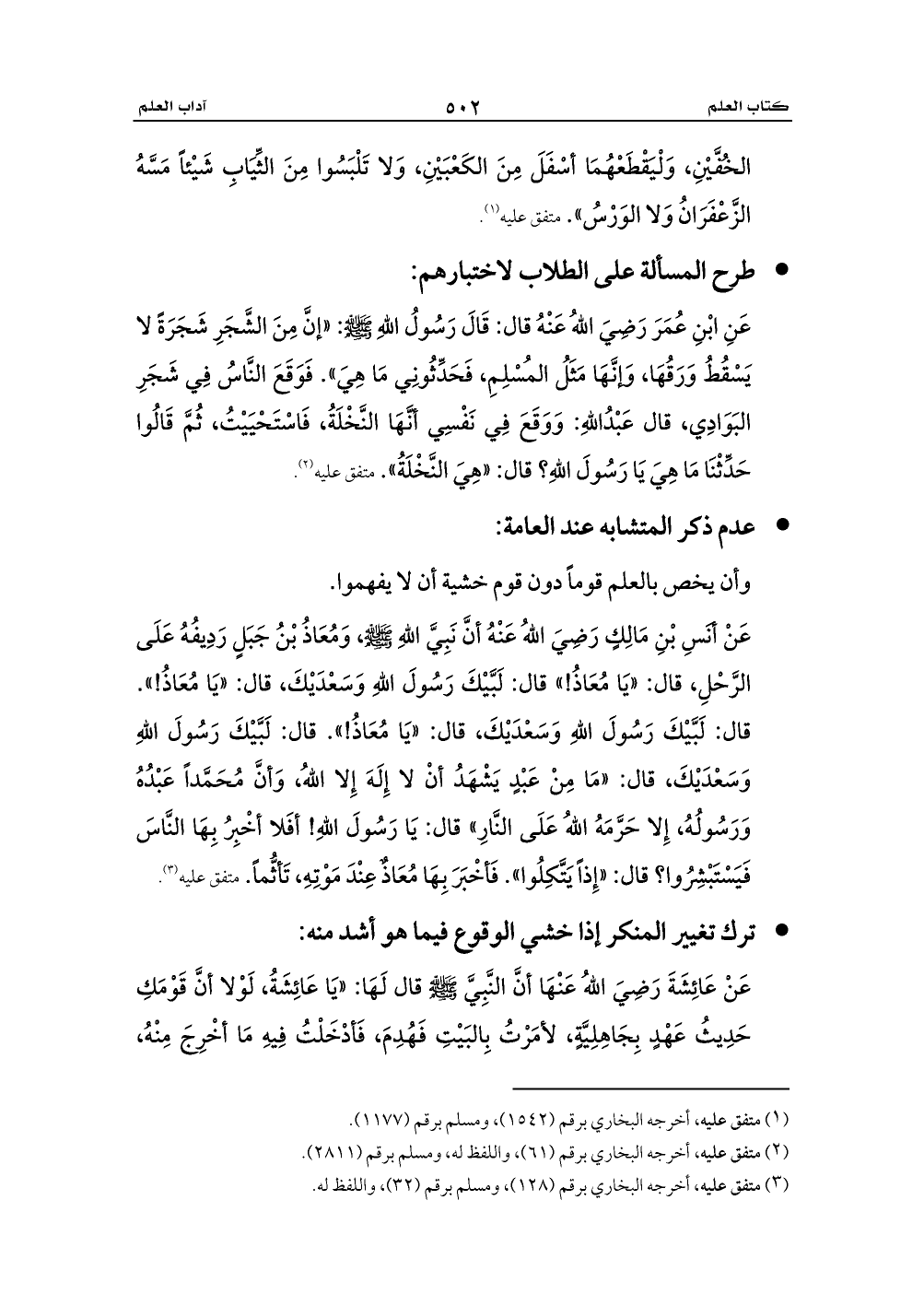 (¬3) متفق عليه، أخرجه البخاري برقم (128) , ومسلم برقم (32)، واللفظ له.