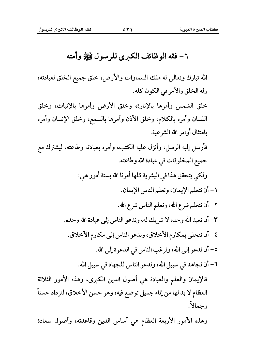 6 - فقه الوظائف الكبرى للرسول - صلى الله عليه وسلم - وأمته