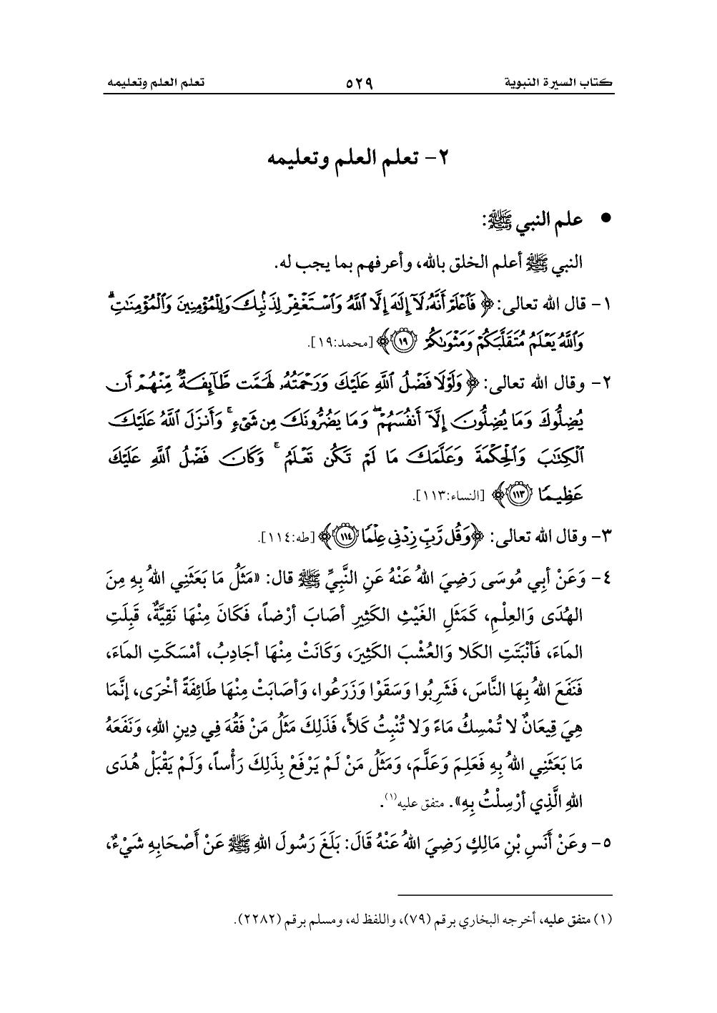 2 - وقال الله تعالى: {وَلَوْلَا فَضْلُ اللَّهِ عَلَيْكَ وَرَحْمَتُهُ لَهَمَّتْ طَائِفَةٌ مِنْهُمْ أَنْ يُضِلُّوكَ وَمَا يُضِلُّونَ إِلَّا أَنْفُسَهُمْ وَمَا يَضُرُّونَكَ مِنْ شَيْءٍ وَأَنْزَلَ اللَّهُ عَلَيْكَ الْكِتَابَ وَالْحِكْمَةَ وَعَلَّمَكَ مَا لَمْ تَكُنْ تَعْلَمُ وَكَانَ فَضْلُ اللَّهِ عَلَيْكَ عَظِيمًا (113)} [النساء:113].