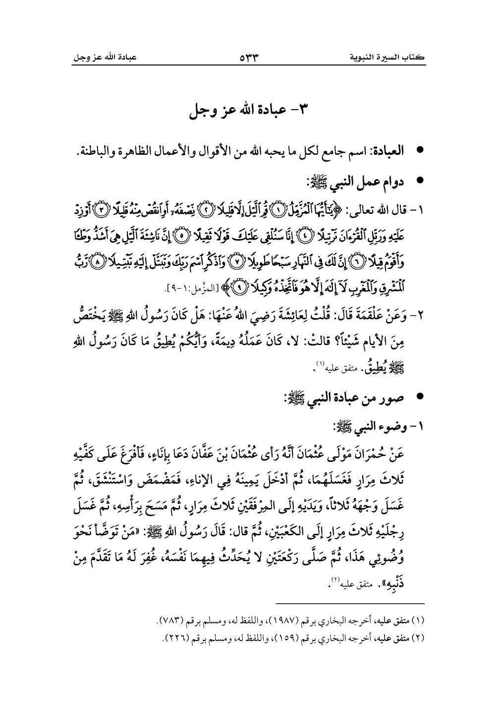 - دوام عمل النبي - صلى الله عليه وسلم -: