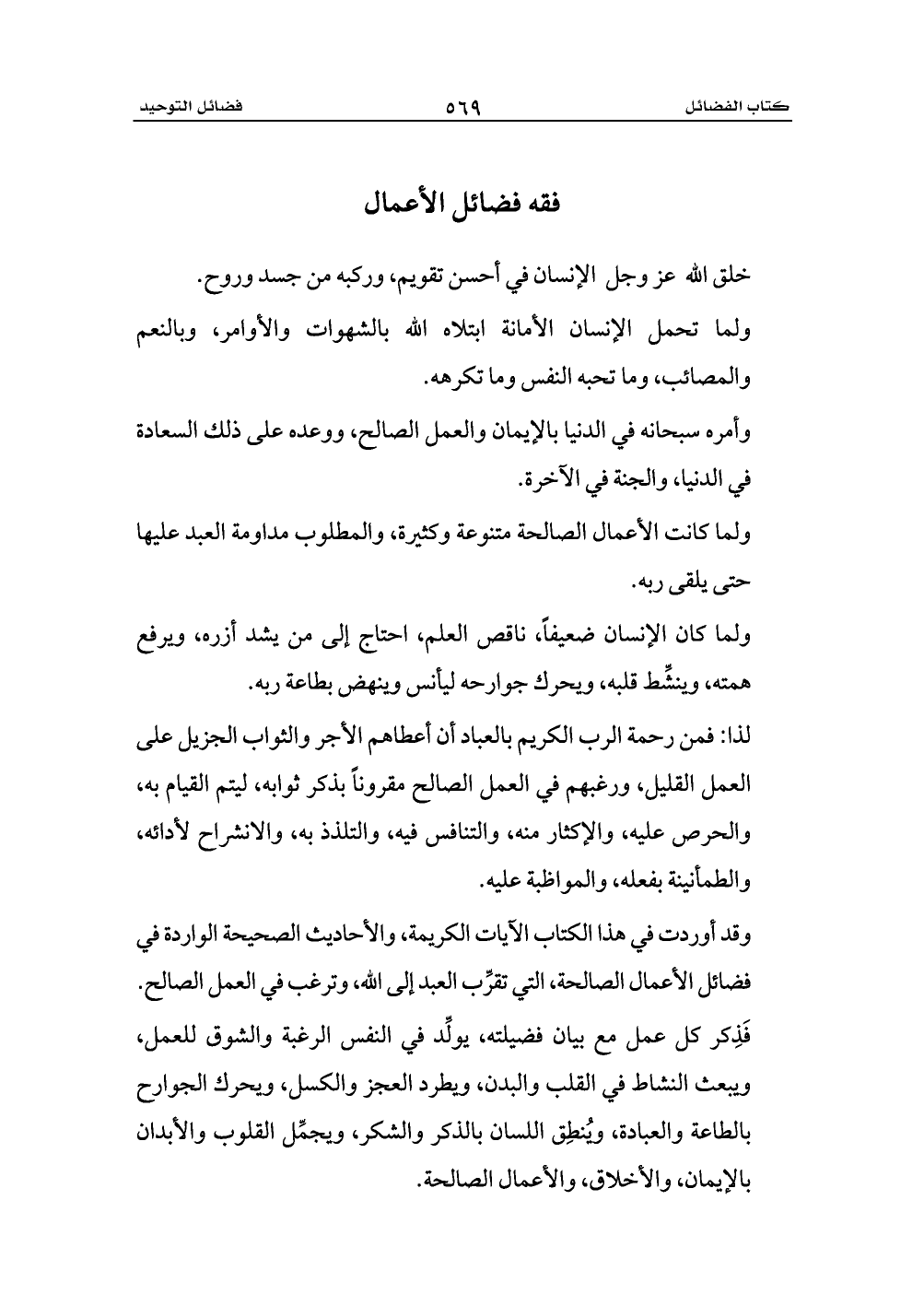 وقد أوردت في هذا الكتاب الآيات الكريمة، والأحاديث الصحيحة الواردة في فضائل الأعمال الصالحة، التي تقرِّب العبد إلى الله، وترغب في العمل الصالح.
