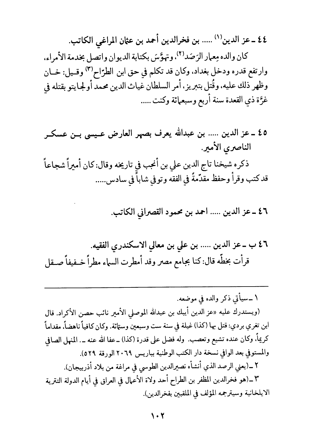 44 - عزّ الدين (¬1) .... بن فخر الدين أحمد بن عثمان المراغي الكاتب.