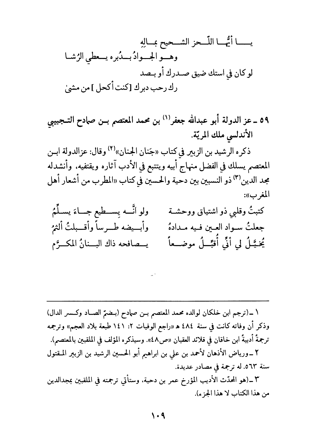 59 - عز الدولة أبو عبد الله جعفر (¬1) بن محمد المعتصم بن صمادح التجبيبي