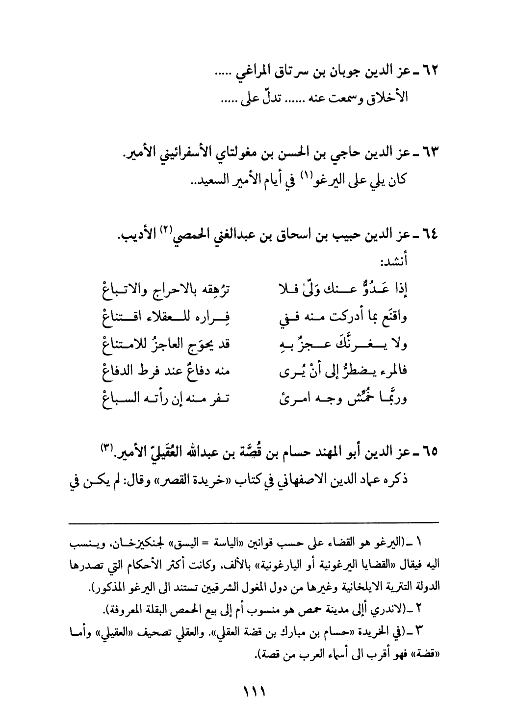 (¬3) (في الخريدة «حسام بن مبارك بن قضة العقلي».والعقلي تصحيف «العقيلي» وأما «قضة» فهو أقرب الى أسماء العرب من قصة).