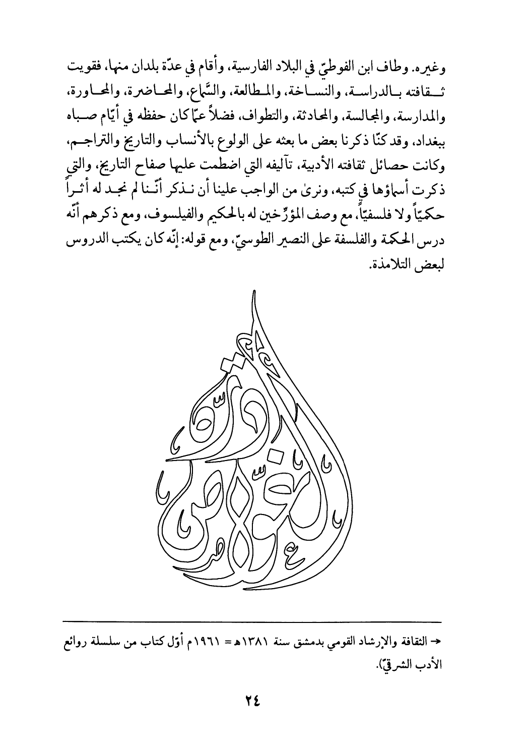 (1) - الثقافة والإرشاد القومي بدمشق سنة 1381 هـ - 1961 م أوّل كتاب من سلسلة روائع الأدب الشرقيّ).