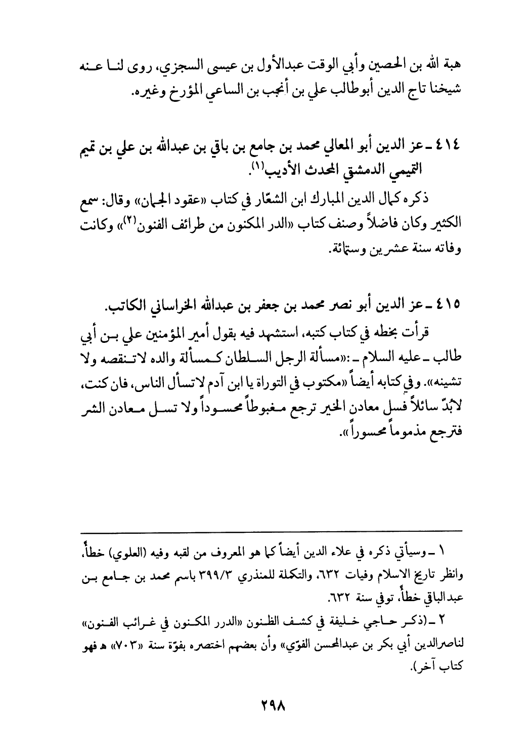 415 - عزّ الدين أبو نصر محمد بن جعفر بن عبد الله الخراساني الكاتب.