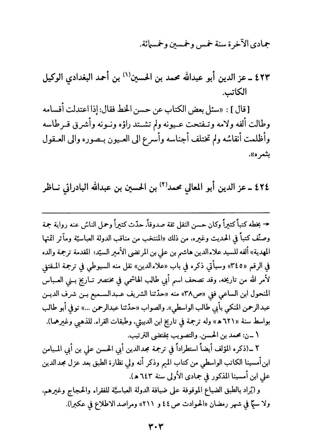 423 - عزّ الدين أبو عبد الله محمد بن الحسين (¬1) بن أحمد البغدادي الوكيل