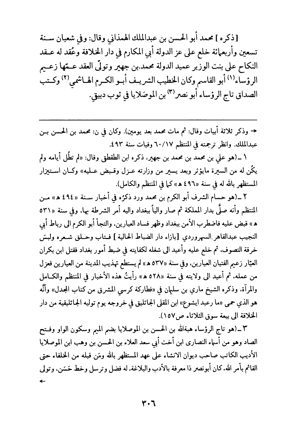 (¬3) (هو تاج الرؤساء هبة الله بن الحسن بن الموصلايا بضم الميم وسكون الواو وفتح الصاد وهو من أسماء النصارى ابن أخت أبي سعد العلاء بن الحسن بن وهب ابن الموصلايا الأديب الكاتب صاحب ديوان الانشاء على عهد المستظهر بالله ومن قبله من الخلفاء حتى القائم بأمر الله، كان أبو نصر ذا معرفة بالأدب والبلاغة، له فضل وترسل وخط حسن، وتولى -