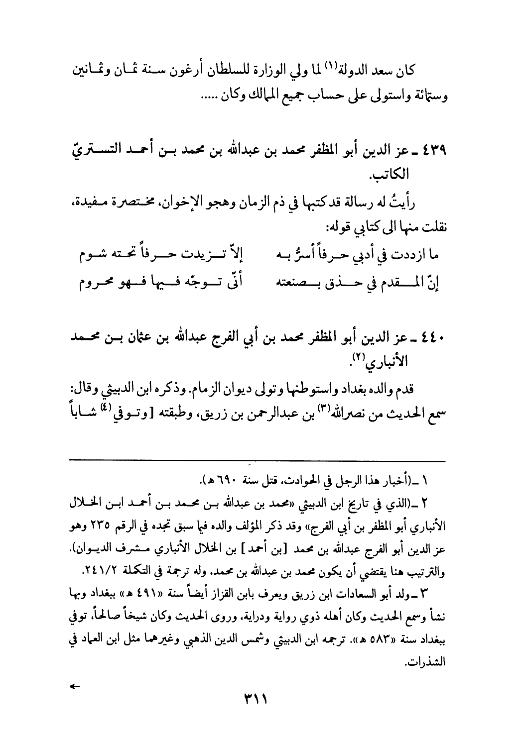 (¬3) ولد أبو السعادات ابن زريق ويعرف بابن القزاز أيضا سنة «491 هـ» ببغداد وبها نشأ وسمع الحديث وكان أهله ذوي رواية ودراية، وروى الحديث وكان شيخا صالحا، توفي ببغداد سنة «583 هـ».ترجمه ابن الدبيثي وشمس الدين الذهبي وغيرهما مثل ابن العماد في الشذرات.