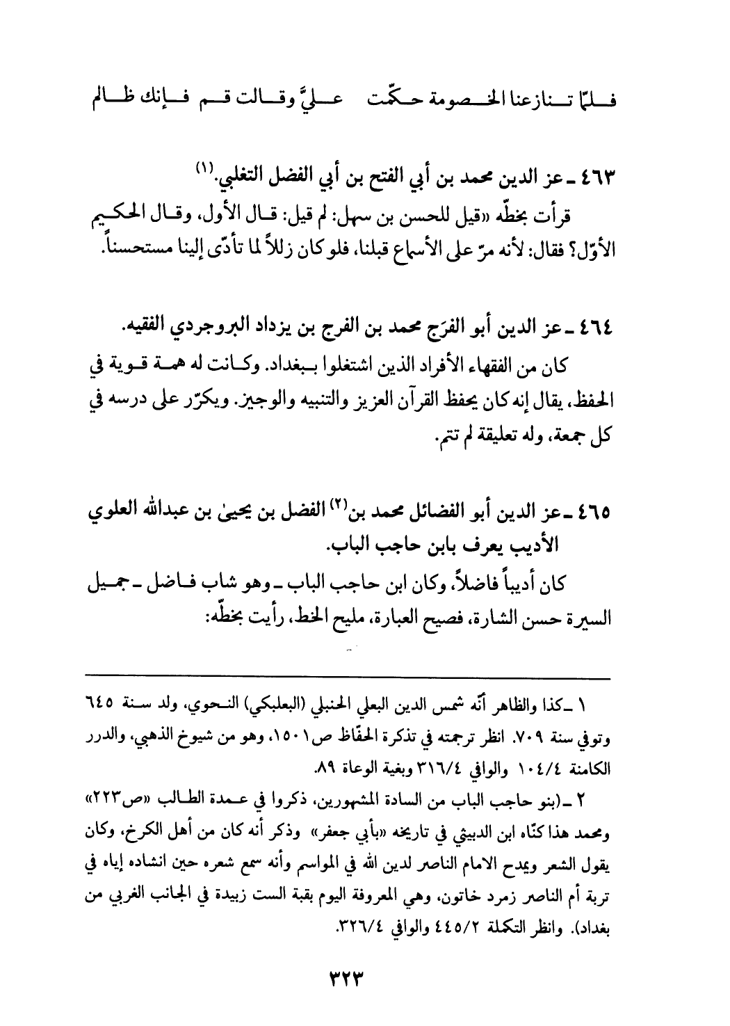 (¬1) كذا والظاهر أنّه شمس الدين البعلي الحنبلي (البعلبكي) النحوي، ولد سنة 645 وتوفي سنة 709.انظر ترجمته في تذكرة الحفّاظ ص 1501، وهو من شيوخ الذهبي، والدرر الكامنة 104/ 4 والوافي 316/ 4 وبغية الوعاة 89.
