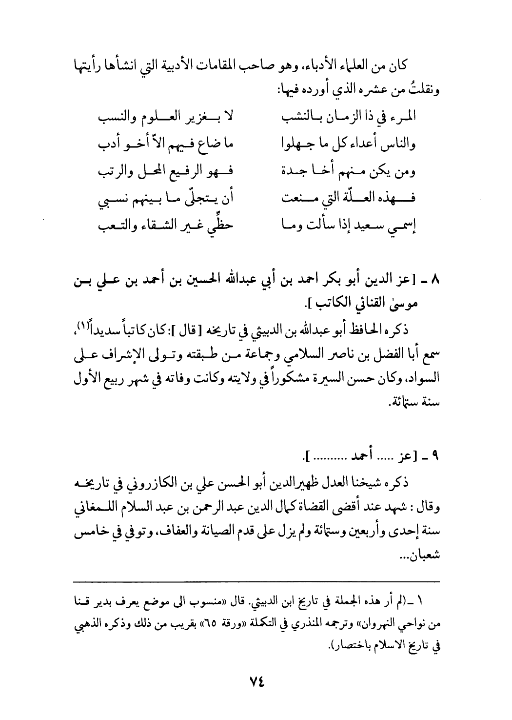 8 - [عزّ الدين أبو بكر احمد بن أبي عبد الله الحسين بن أحمد بن علي بن