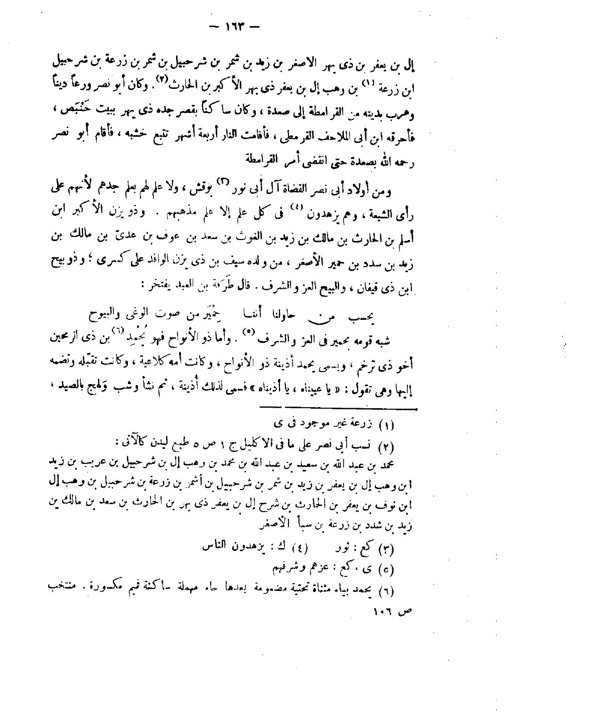 آل بن يعفر بن ذي يهر الأصغر بن زيد بن شمر بن شرحبيل بن شمر بن زرعة بن شرحبيل أبن زرعة بن وهب آل بن يعفر ذي يهر الأكبر بن الحارث. وكان أبو نصر ورعا دينا وهرب بدينه من. . . . . . . إلى صعدة، وكان ساكنا بقصر جده ذي يهر ببيت حنبص، فاحرقه أبن أبي الملاحف القرمطي، فأقامت النار أربعة أشهر تتبع خشبه، فأقام أبو نصر رحمه الله بصعدة حتى انقضى أمر القرامطة.