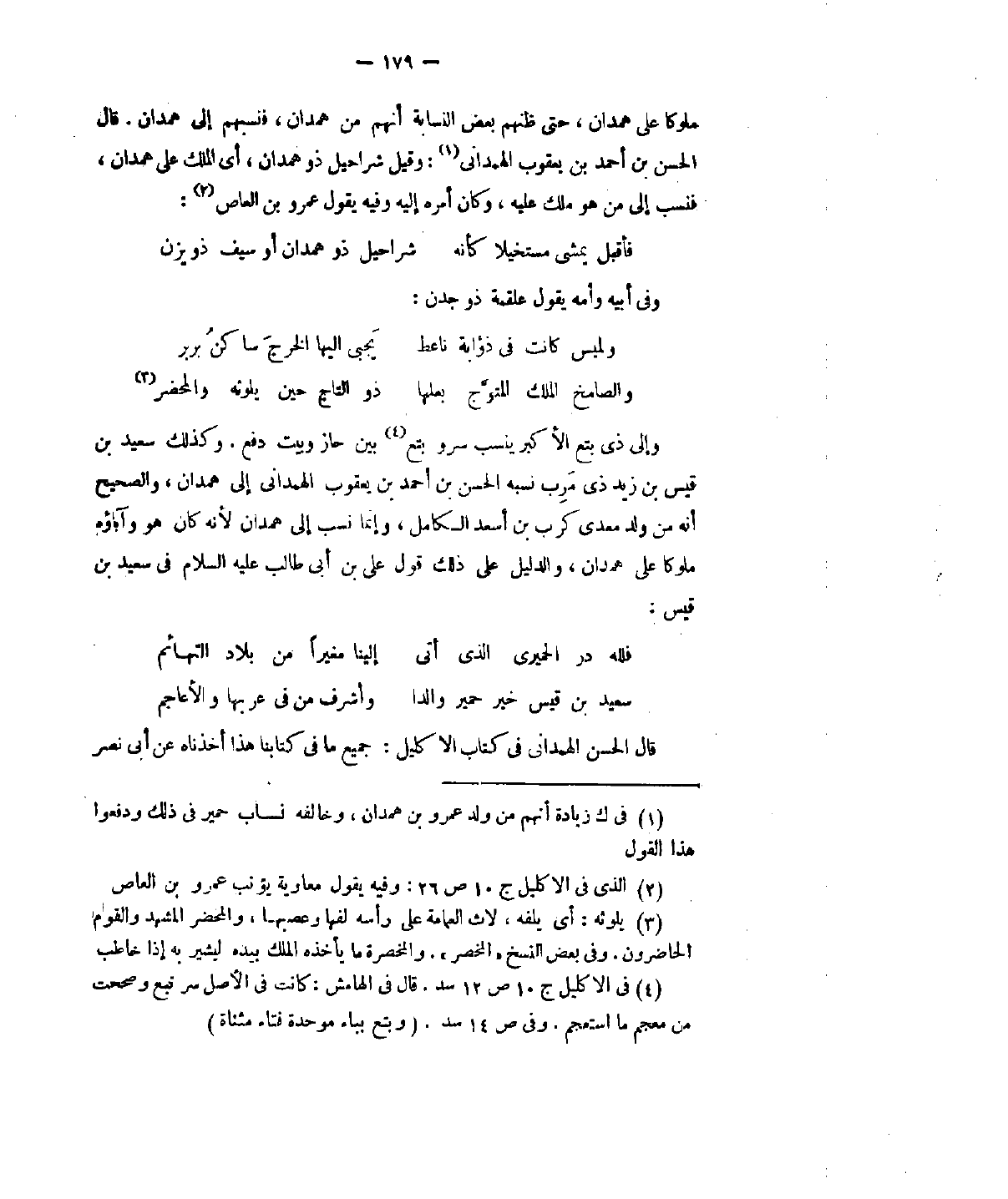 وإلى ذي يتع الأكبر ينسب سرو بتع بين حاز وبيت دفع. وكذلك سعيد بن قيس بن زيد ذي مرب نسبه الحسن بن أحمد بن يعقوب الهمداني إلى همدان، والصحيح أنَّه من ولد معدي كرب بن أسعد الكامل، وإنما نسب إلى همدان لأنه كان هو و. . . . . . . . . . ملوك على همدان، والدليل على ذلك قول عليّ بن أبي طالب عليه