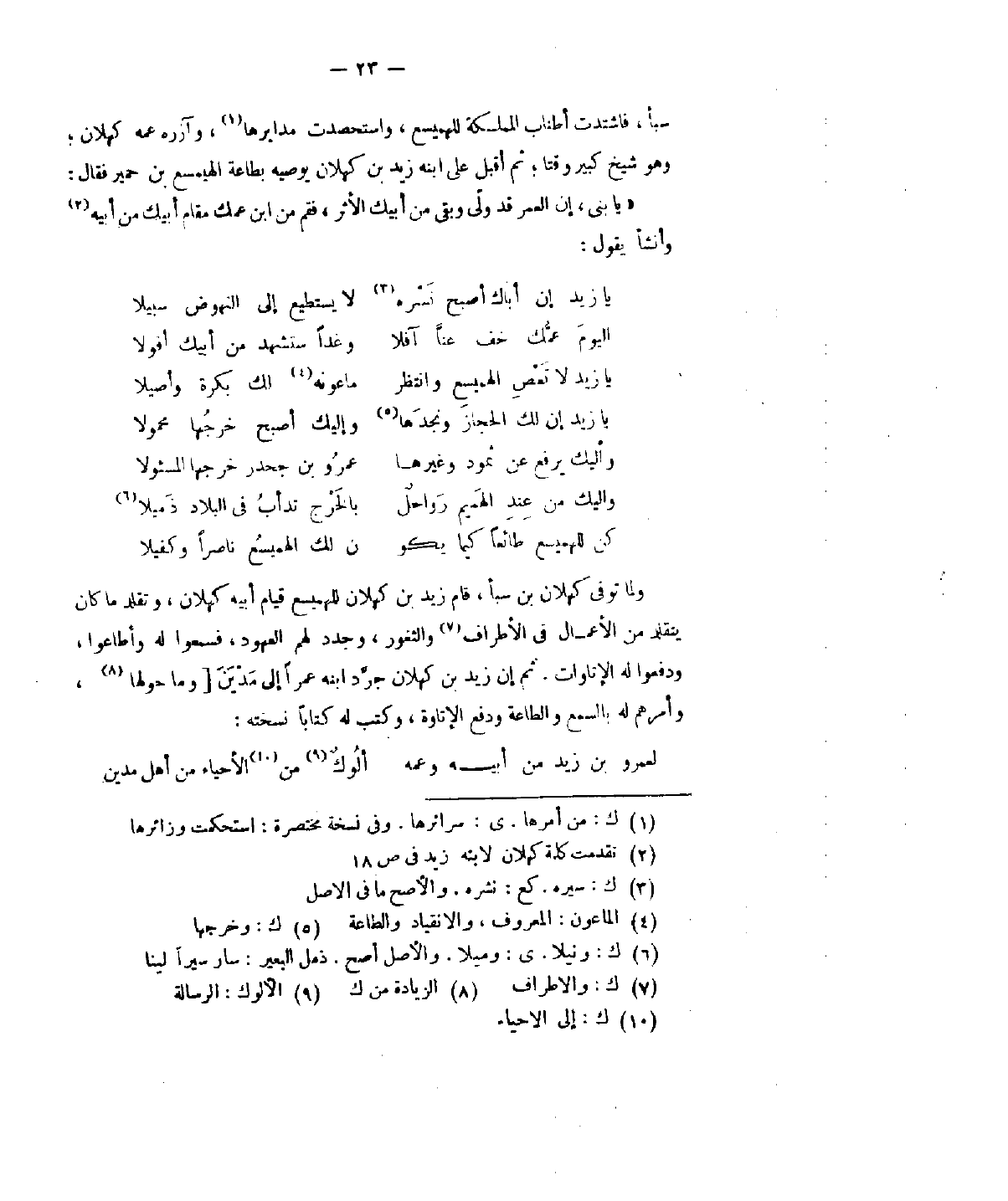 سبأ، فاشتدت أطناب المملكة للهميسع، واستحصدت مدايرها وآزره عمه كهلان؛ وهو شيخ كبير وقتا؛ ثم أقبل على ابنه زيد بن كهلان يوصيه بطاعة الهميسع بن حمير فقال: بني، إنَّ العمر واى وبقى من أبيك الأثر، فقم من أبن عمك مقام أبيك من أبيه وأنشأ يقول: